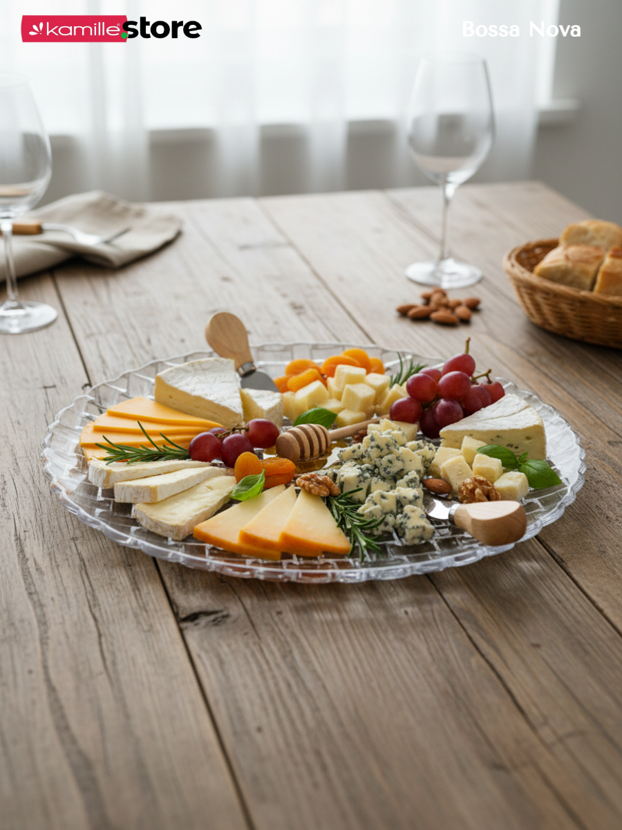 Красивое блюдо из стекла, представляет собой неотъемлемый элемент красивого сервировочного инвентаря на кухне или праздничном столе.
