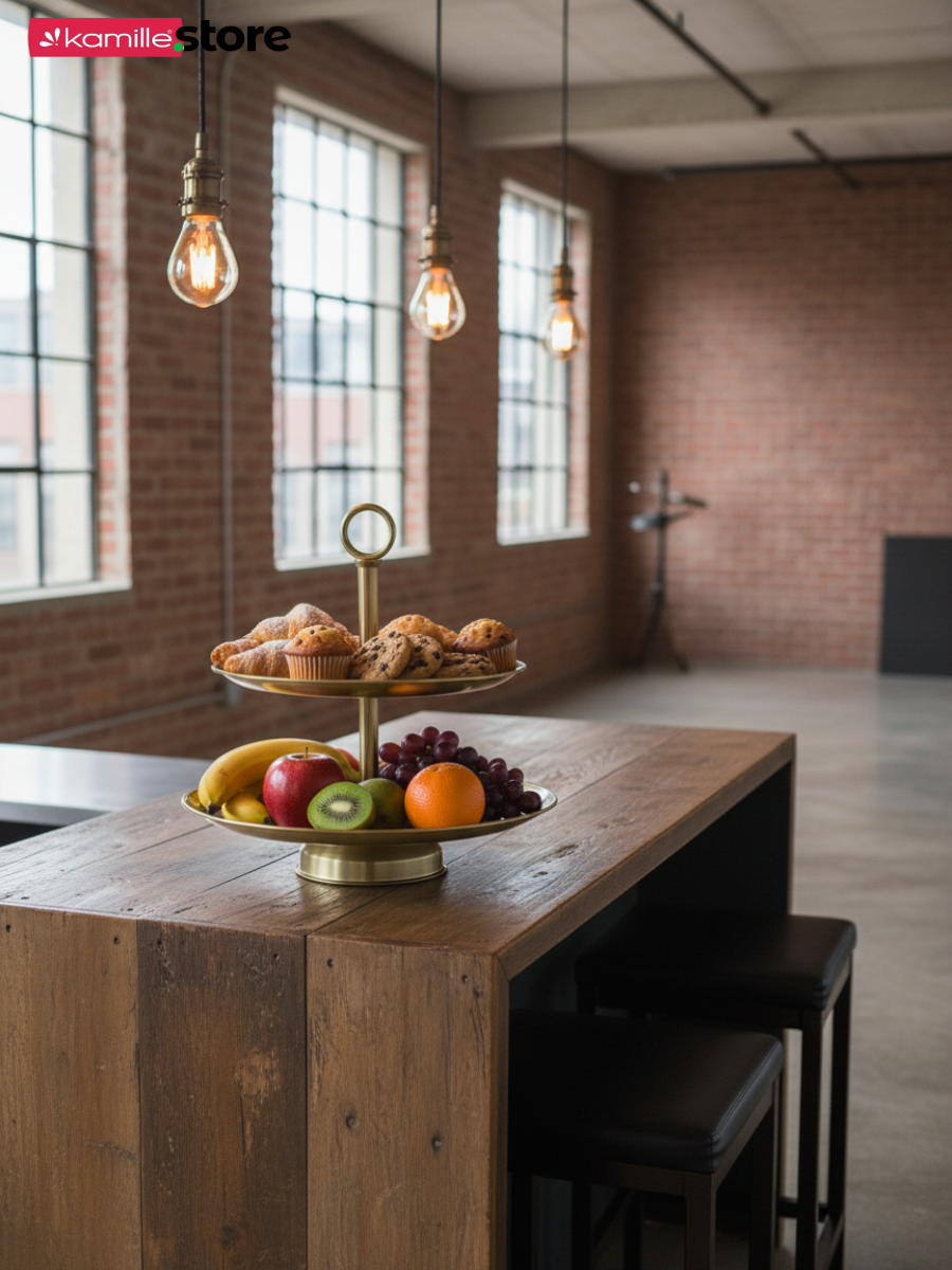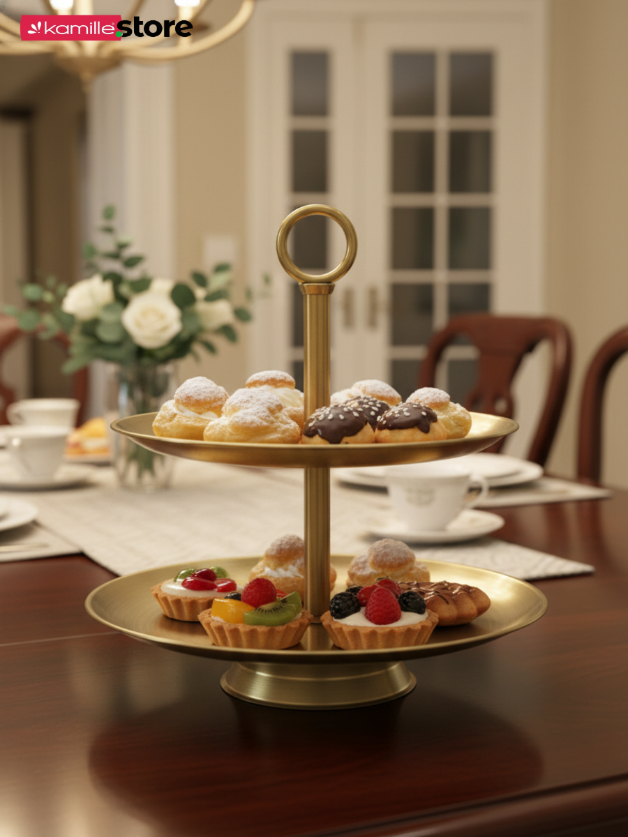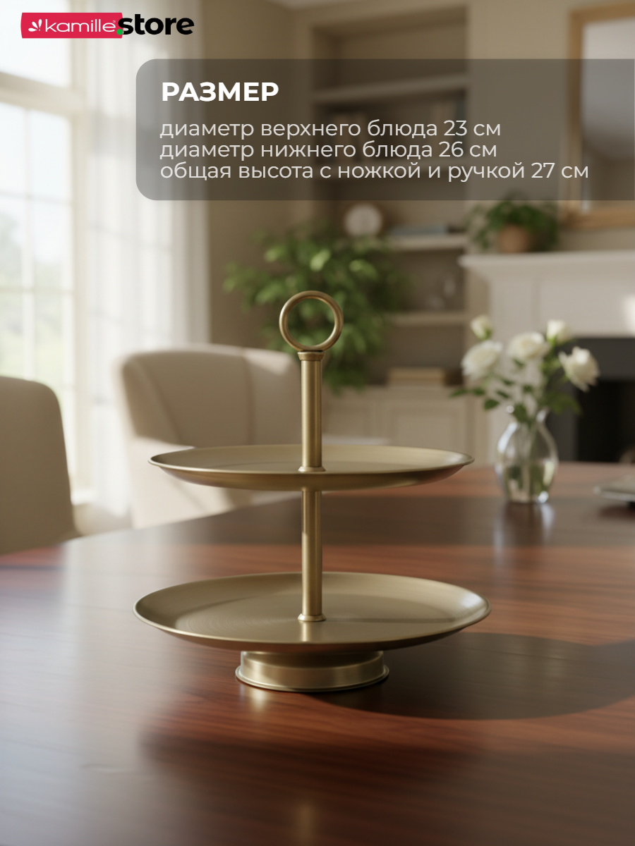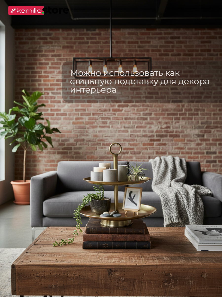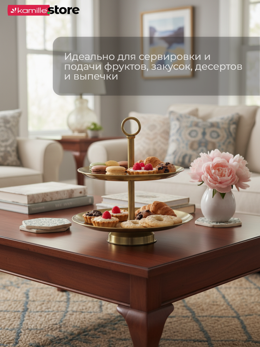 Двухъярусная фруктовница из нержавеющей стали на ножке - представляет собой неотъемлемый элемент красивого сервировочного инвентаря на кухне или праздничном столе. Она послужит не только для красивого размещения фруктов, блюдо можно использовать для подачи разнообразных закусок, выпечки и десертов. Или использовать как стильный предмет интерьера - как подставку для различных предметов и декора.