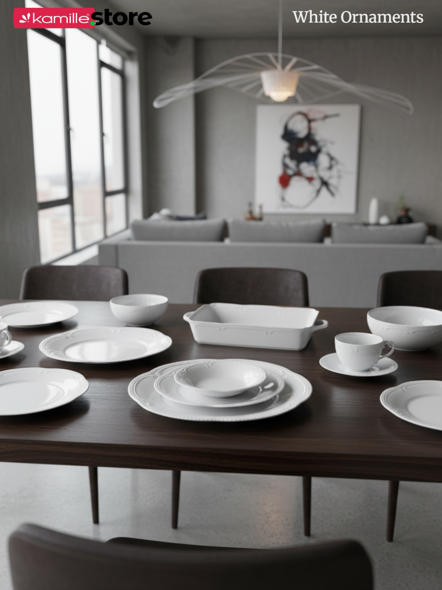 Серия посуды "White Ornaments" универсальна, как для дома, так и для кафе, и ресторанов.