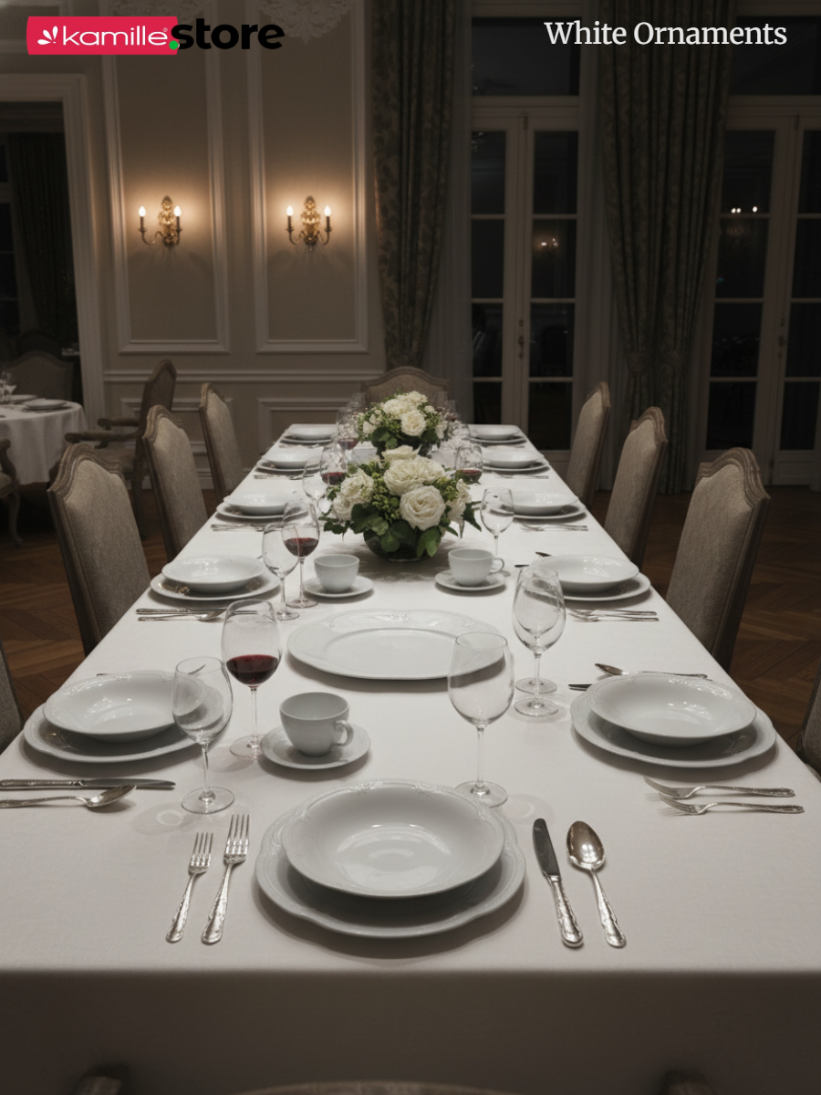 Столовая посуда серии "White Ornaments" - это классическая, изящная, привлекательная, белоснежная и очень практичная посуда. Все предметы из этой коллекции можно мыть в посудомоечной машине и использовать в микроволновых печах. Фарфор этой серии обладает такими характеристиками как: укрепленный край от сколов, особо прочная глазурь, минимальная пористость, практичность и долговечность. Это стильный выбор для сервировки вашего стола.