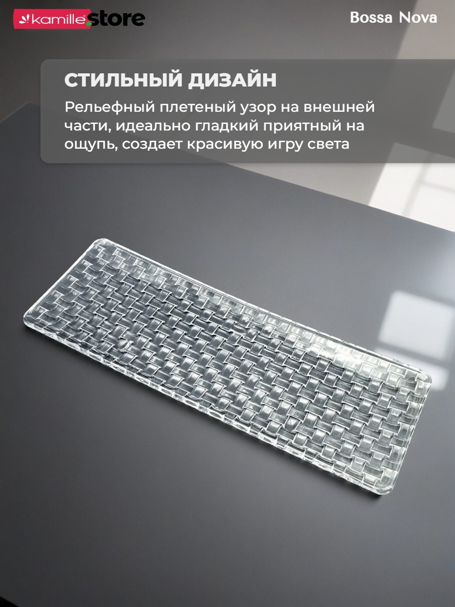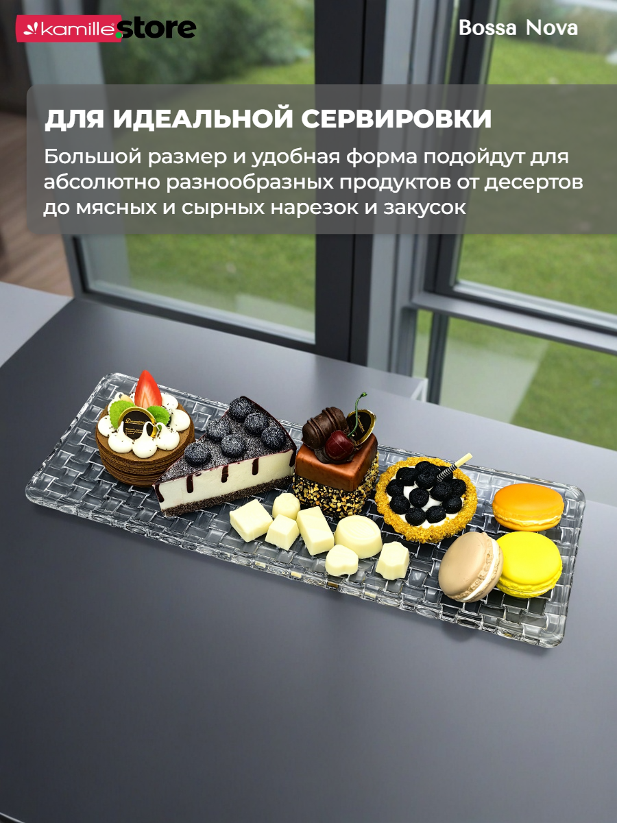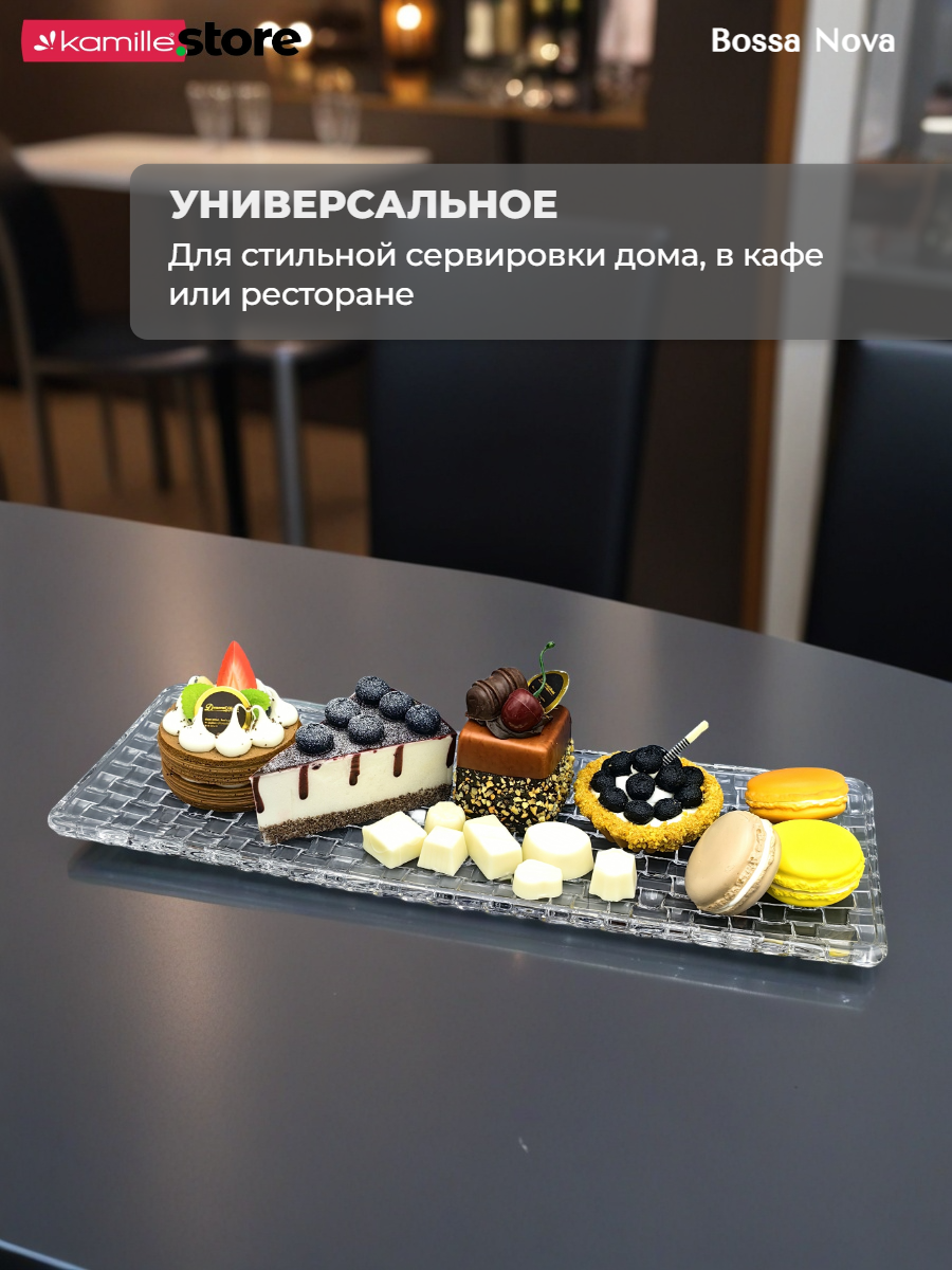 Представляем вашему вниманию стильное прямоугольное блюдо из коллекции Bossa Nova - это универсальная посуда, одинаково хорошо подойдет как для десертов или выпечки, так и для закусок или нарезок. Такая посуда создана для того, чтобы добавить изысканности вашему интерьеру и придать уютной обстановке штрих оригинальности.