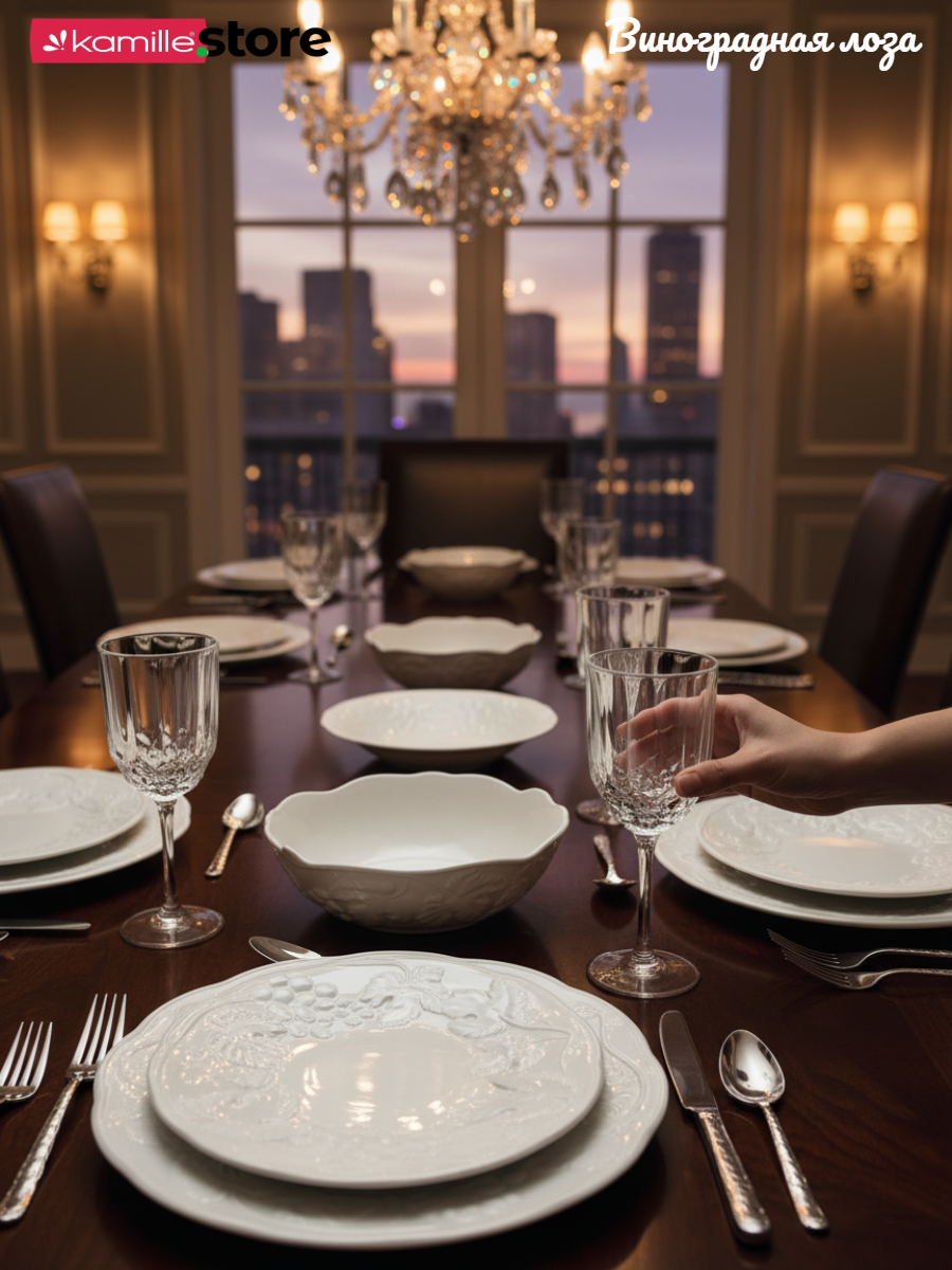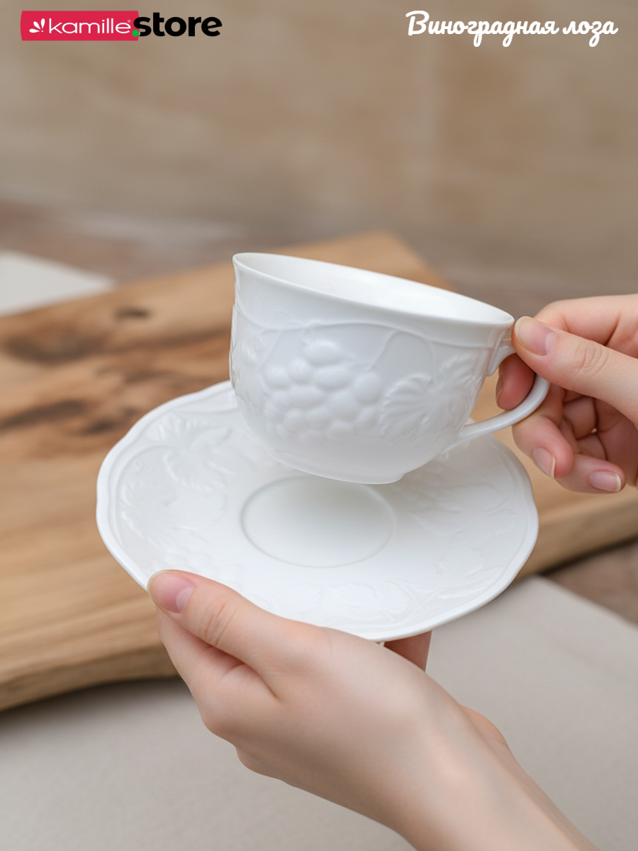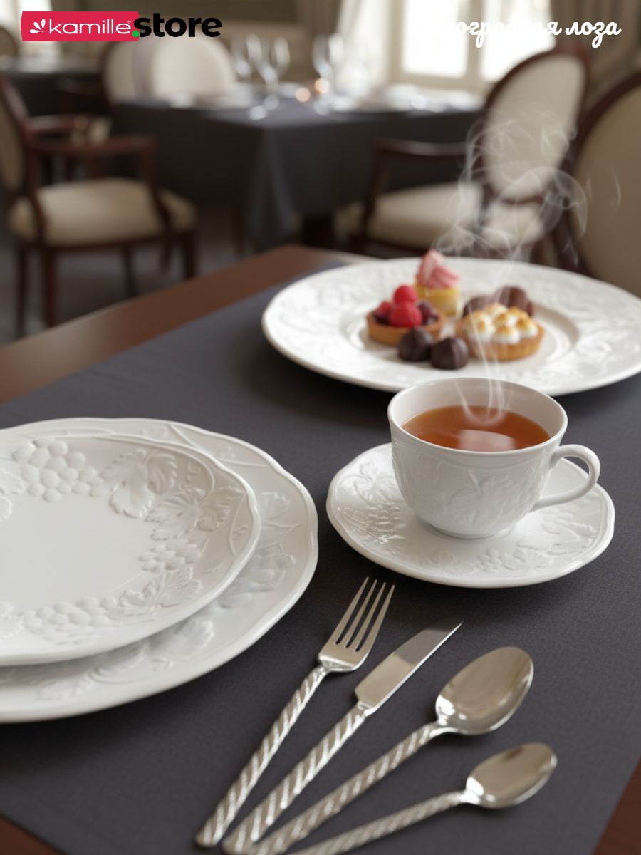 Коллекция посуды "Виноградная лоза" универсальна, как для дома, так и для кафе, и ресторанов.