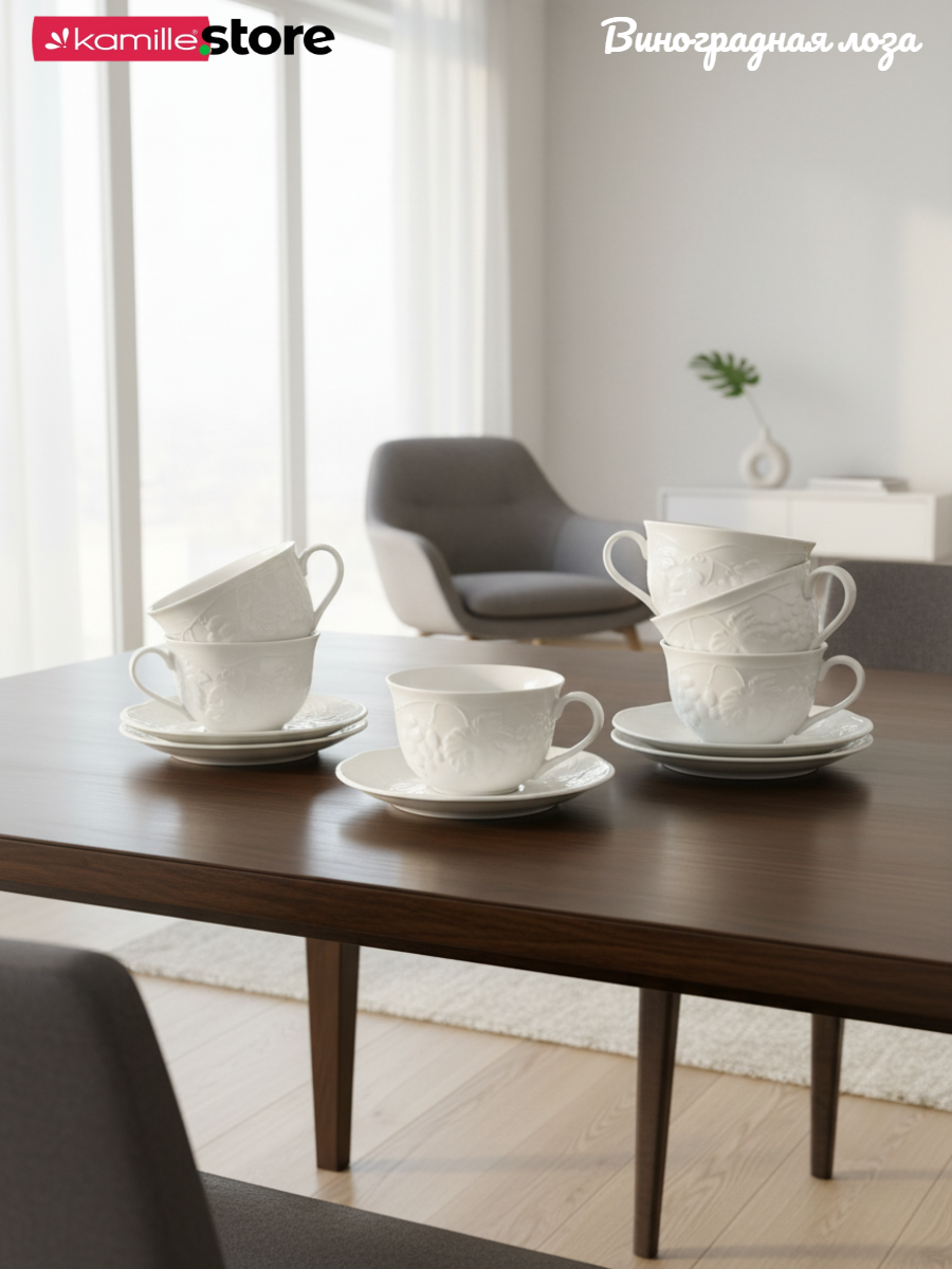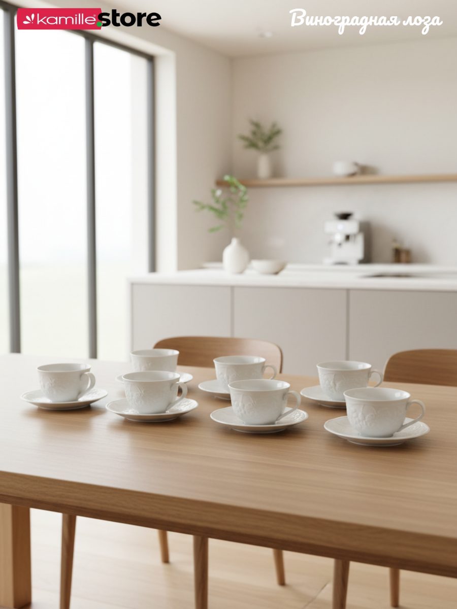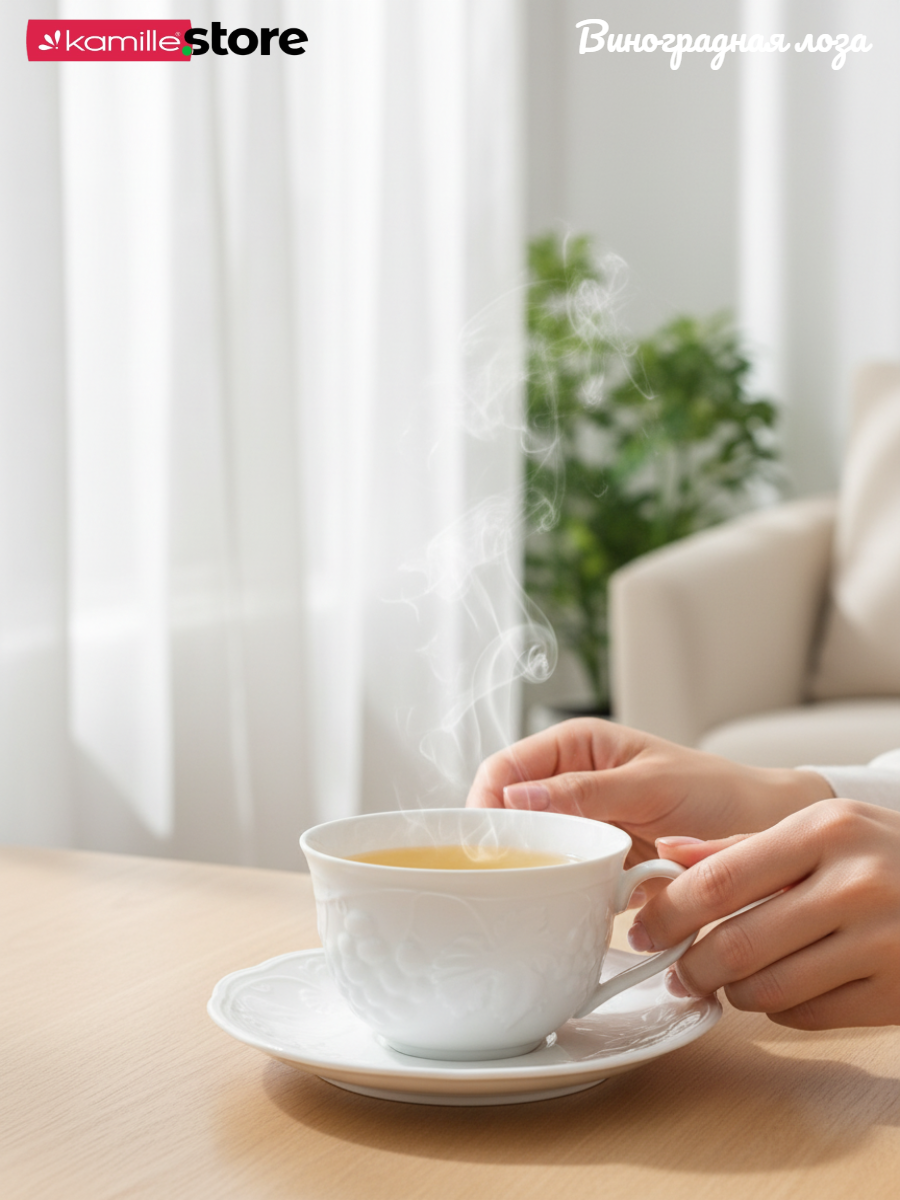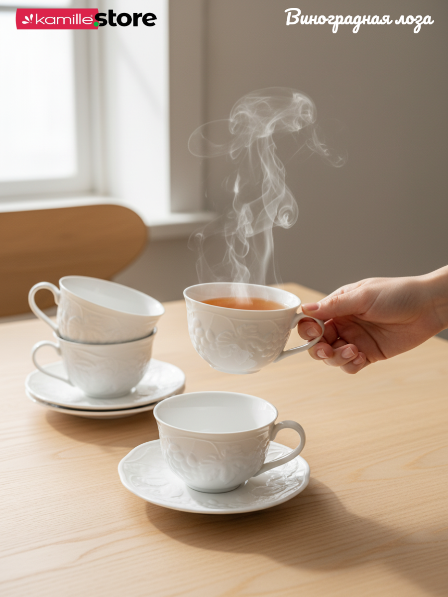 Коллекция посуды "Виноградная лоза" универсальна, как для дома, так и для кафе, и ресторанов.