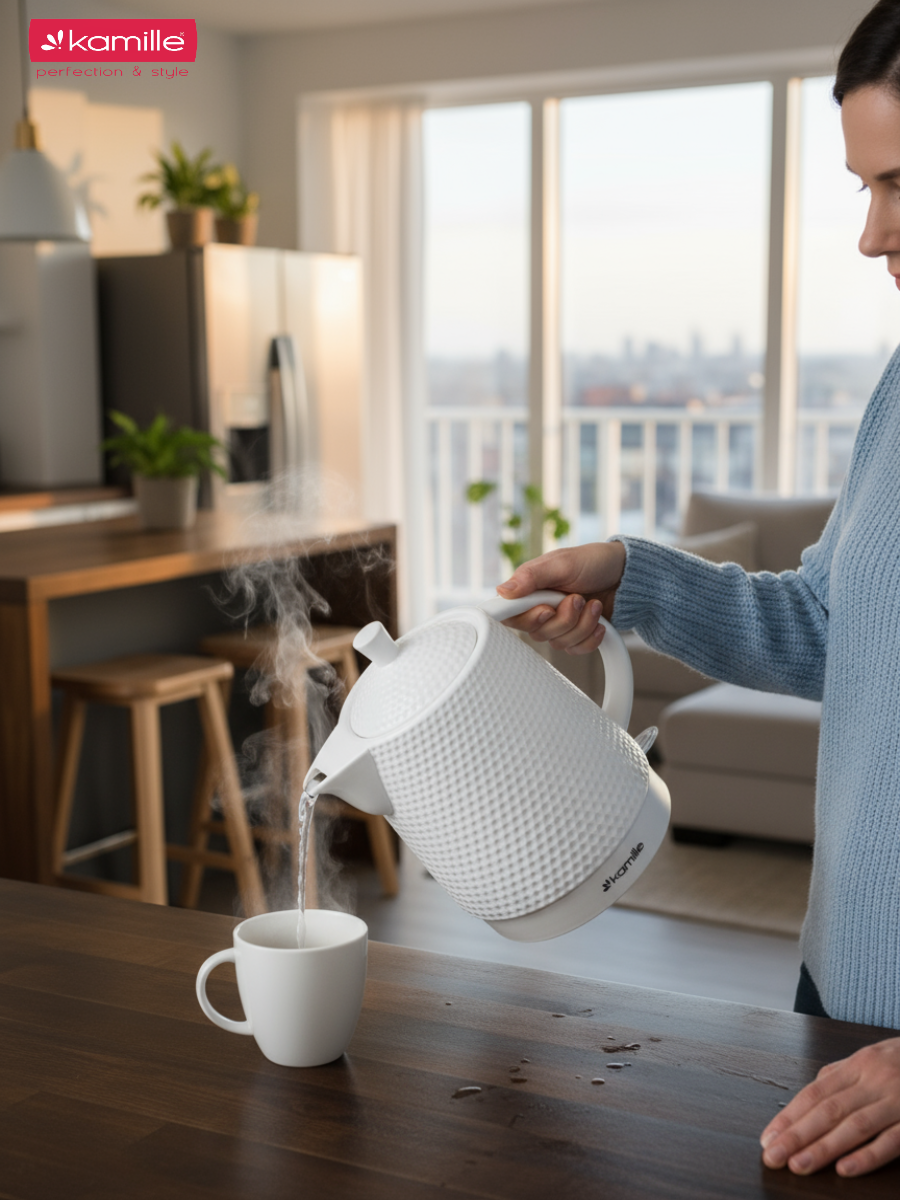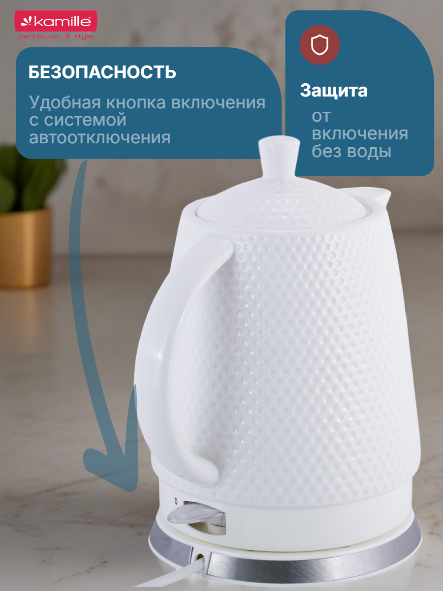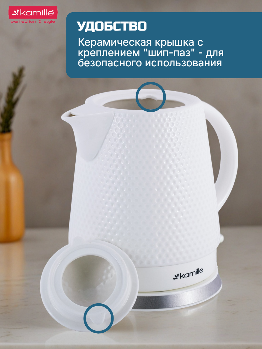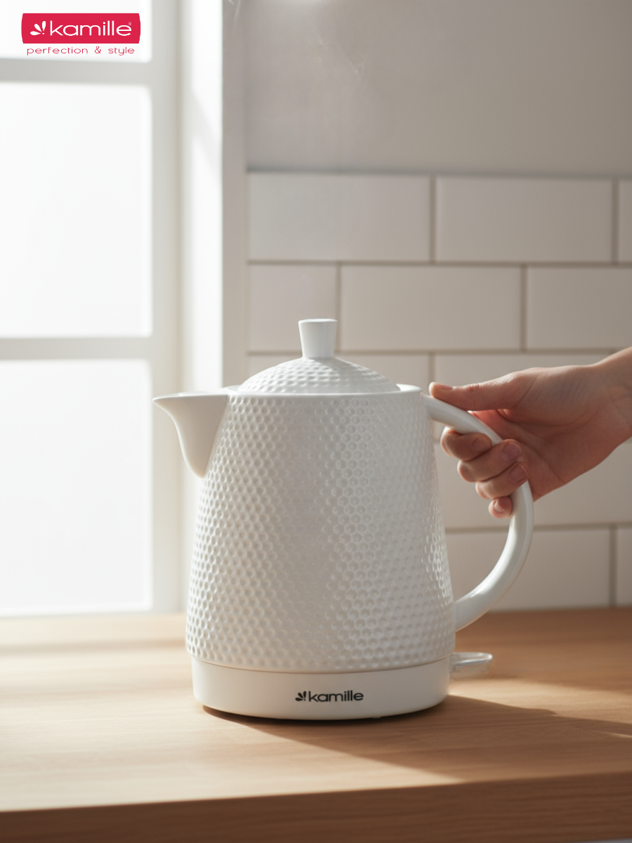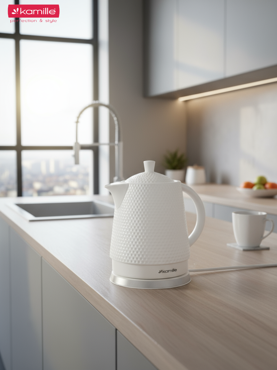 Электрические чайники Kamille изготовлены из высококачественных материалов с использованием новейших технологий производства, благодаря чему они подходят для интенсивного ежедневного использования, а их привлекательный внешний вид непременно подойдет к дизайну Вашей кухни.