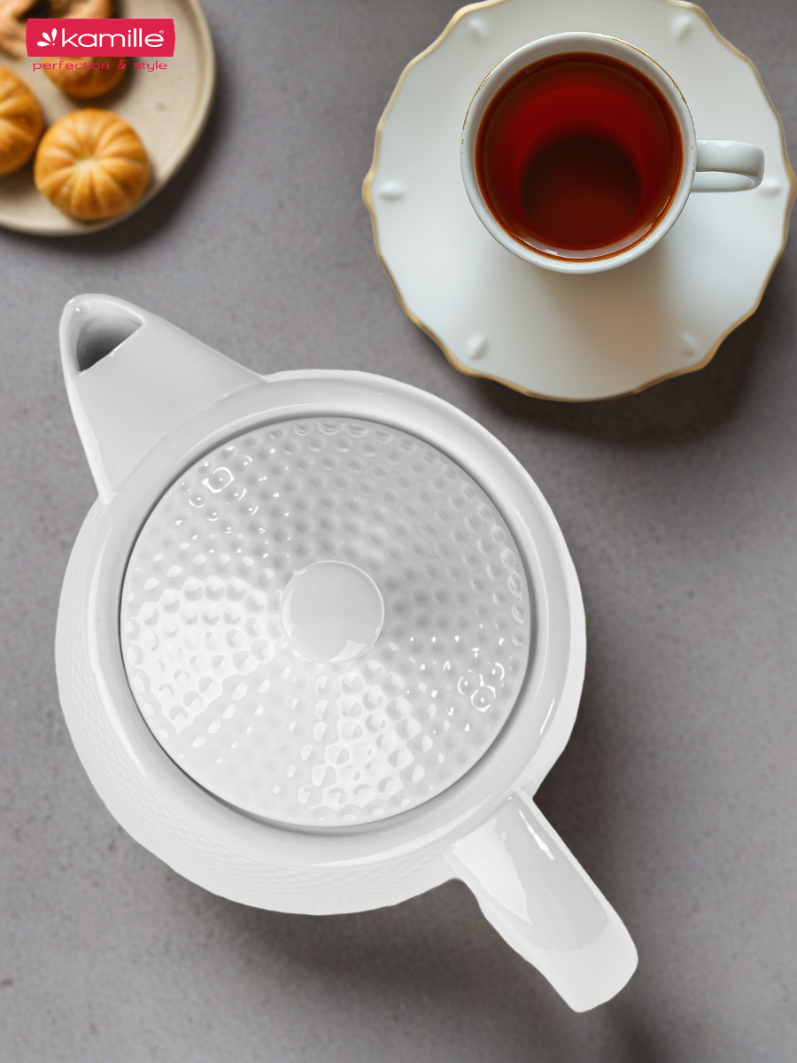 - Сохраняет тепло долгое время, что не свойственно изделиям из пластика и тем более металлическим чайникам.