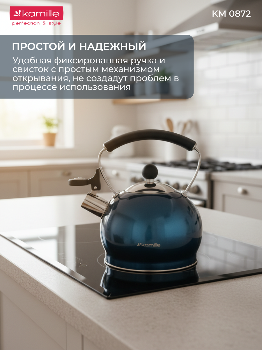 Чайники Kamille изготовлены из высококачественных материалов с использованием новейших технологий производства, благодаря чему они подходят для интенсивного ежедневного использования, а их эстетичный внешний вид непременно подойдет к дизайну Вашей кухни.