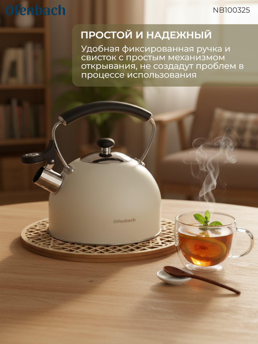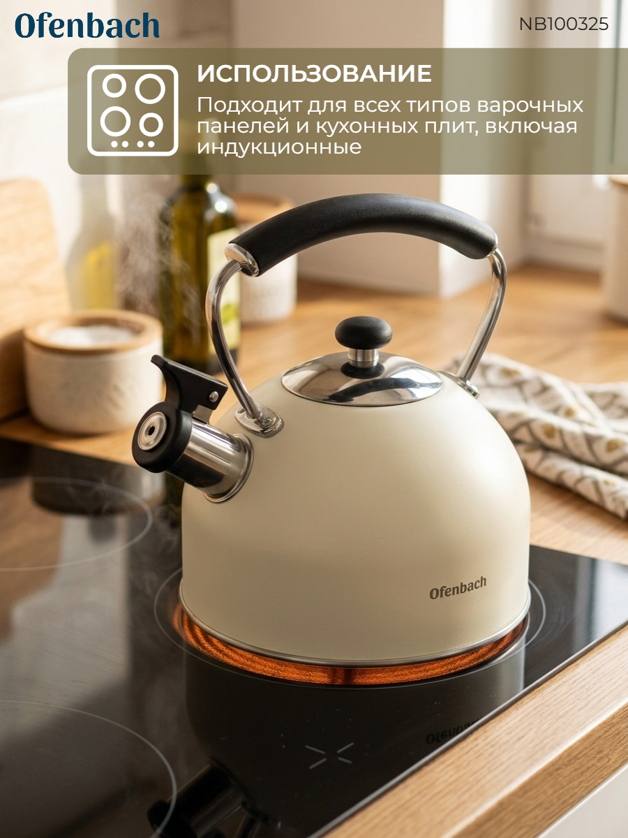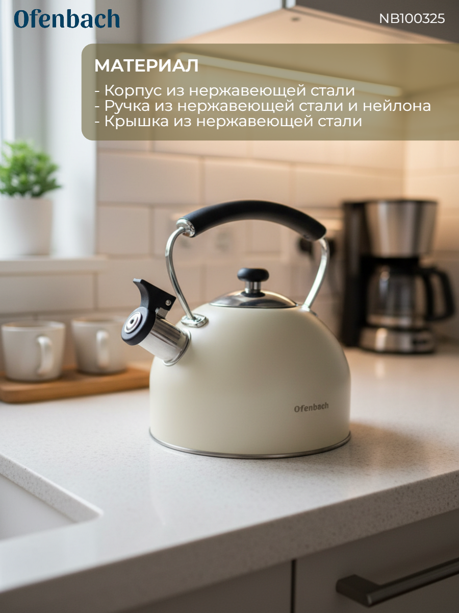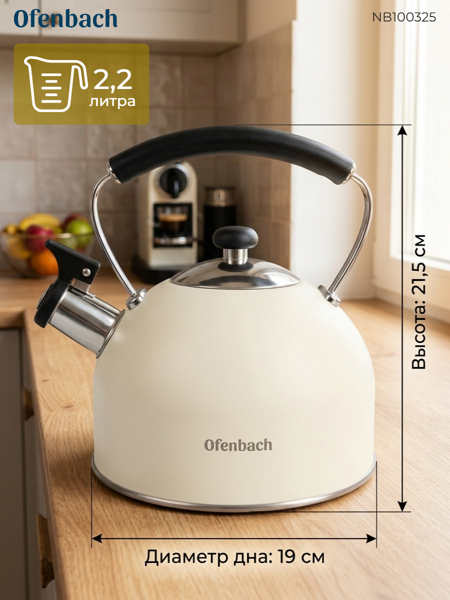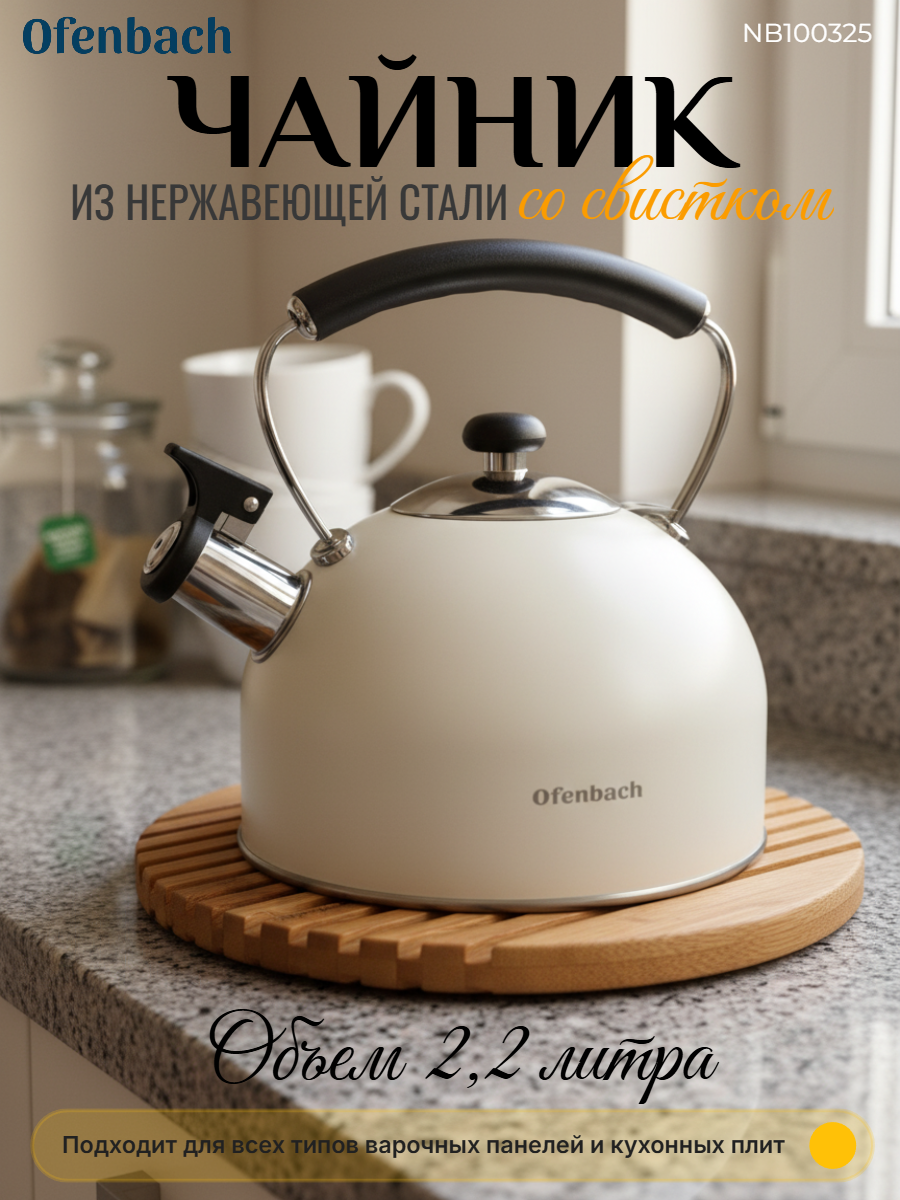 Чайники Ofenbach изготовлены из высококачественных материалов с использованием новейших технологий производства, благодаря чему они подходят для интенсивного ежедневного использования, а их внешний вид непременно подойдет к дизайну Вашей кухни.