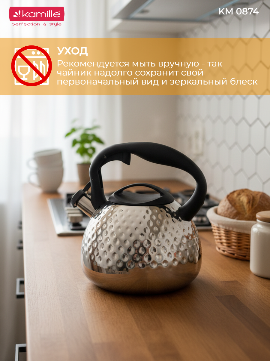 Чайники Kamille изготовлены из высококачественных материалов с использованием новейших технологий производства, благодаря чему они подходят для интенсивного ежедневного использования, а их эстетичный внешний вид непременно подойдет к дизайну Вашей кухни.