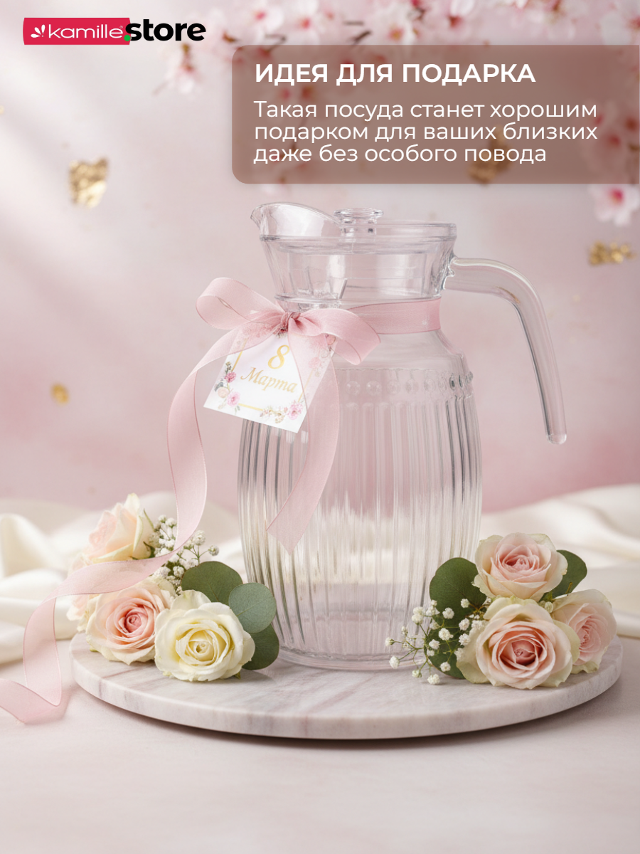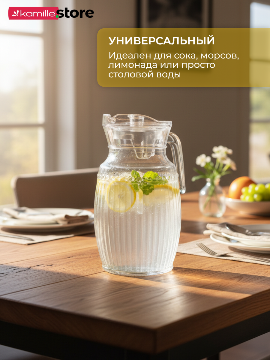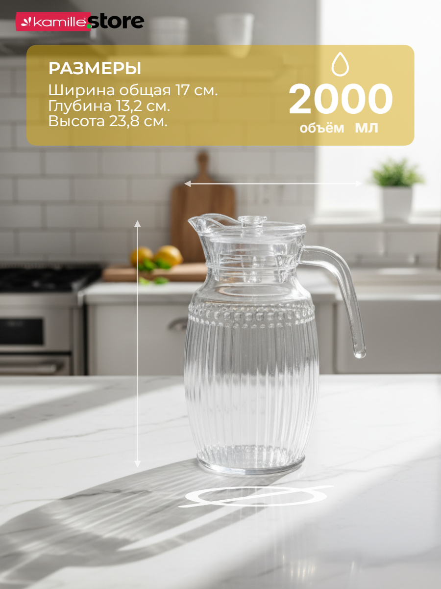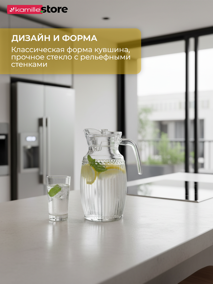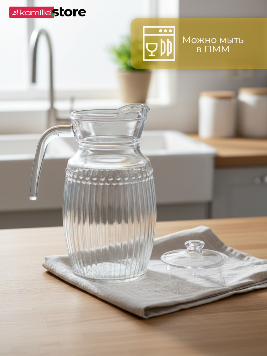 Стеклянный кувшин с ручкой и крышкой объемом 2 литра представляет собой стильный и функциональный аксессуар, выполнен в классическом бесцветном дизайне, который подойдет к любому интерьеру и станет отличным дополнением при сервировке стола.