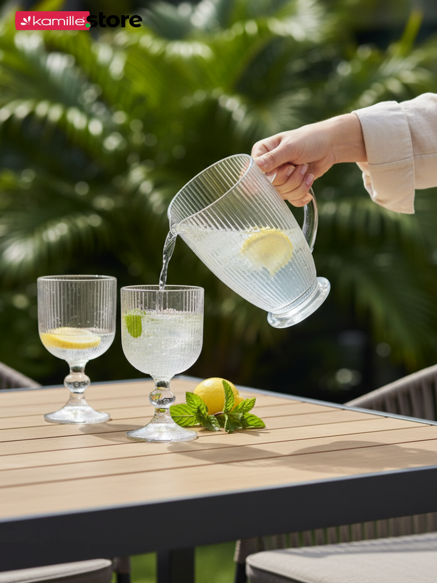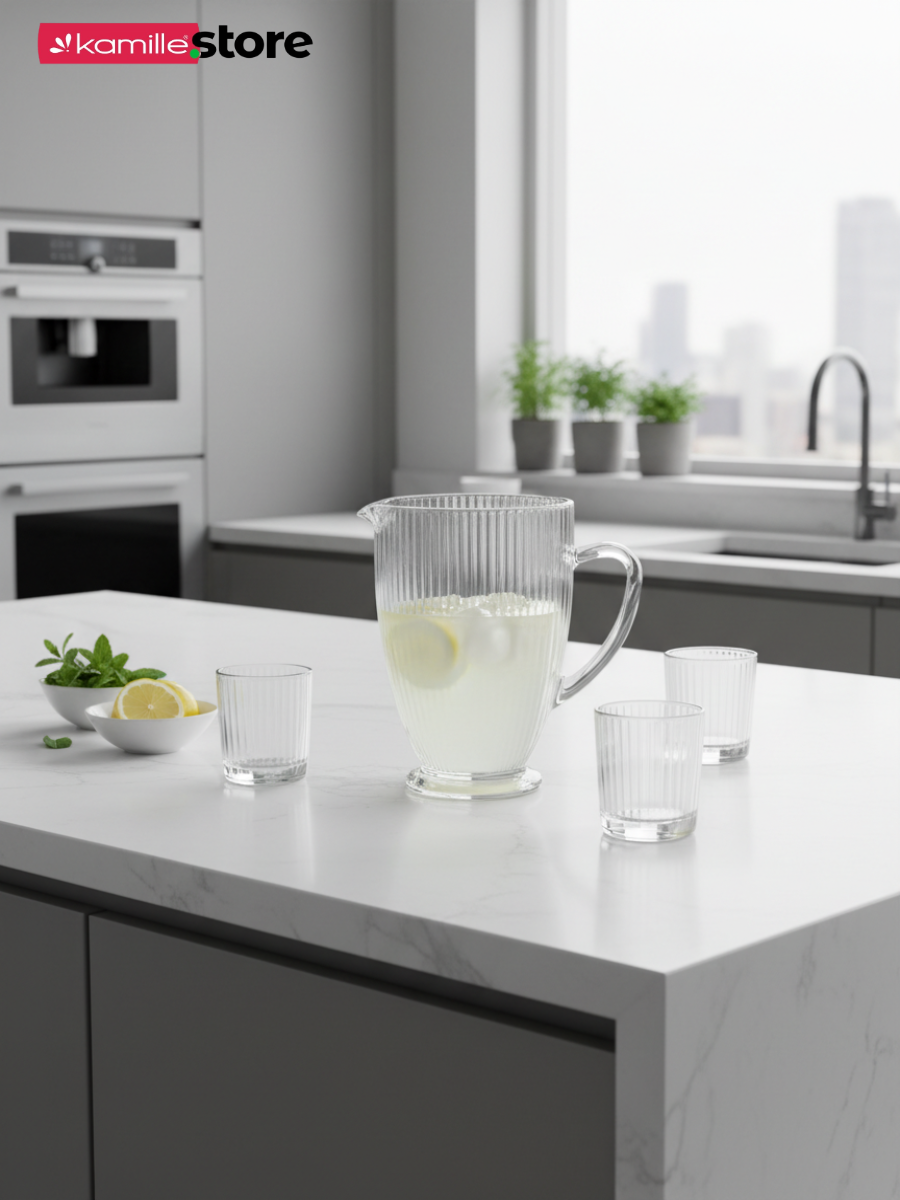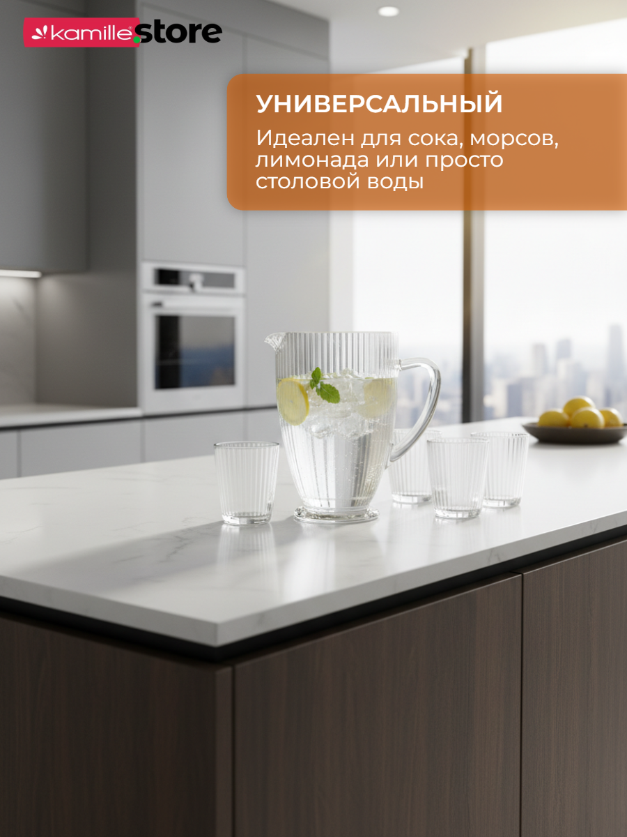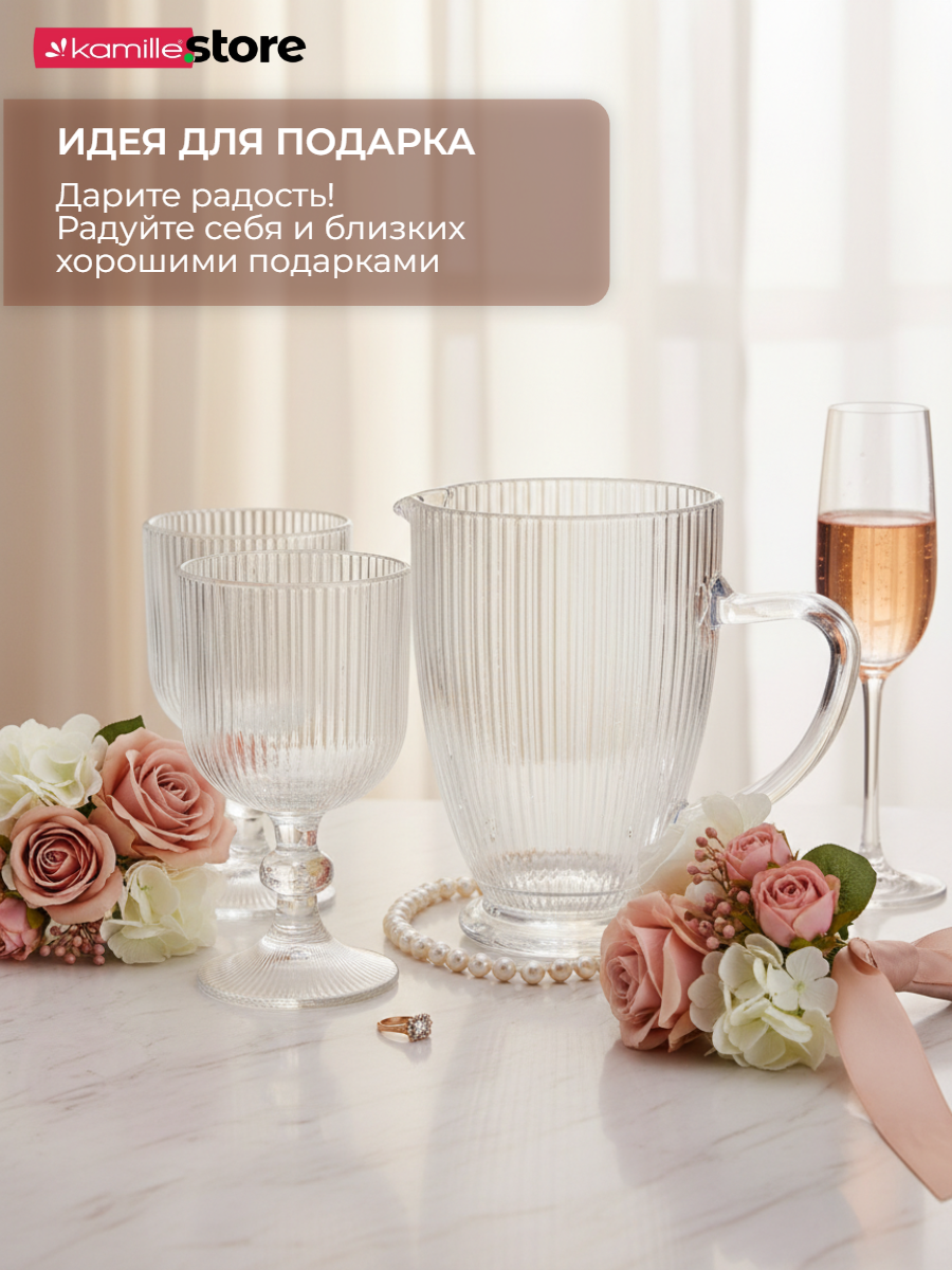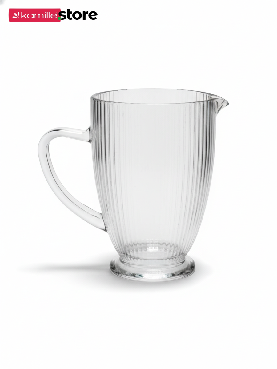 Стеклянный кувшин на ножке объемом 1 литр представляет собой стильный и функциональный аксессуар, выполнен в классическом дизайне, который подойдет к любому интерьеру, в комплекте с фужерами одной серии станет отличным дополнением при сервировке стола.