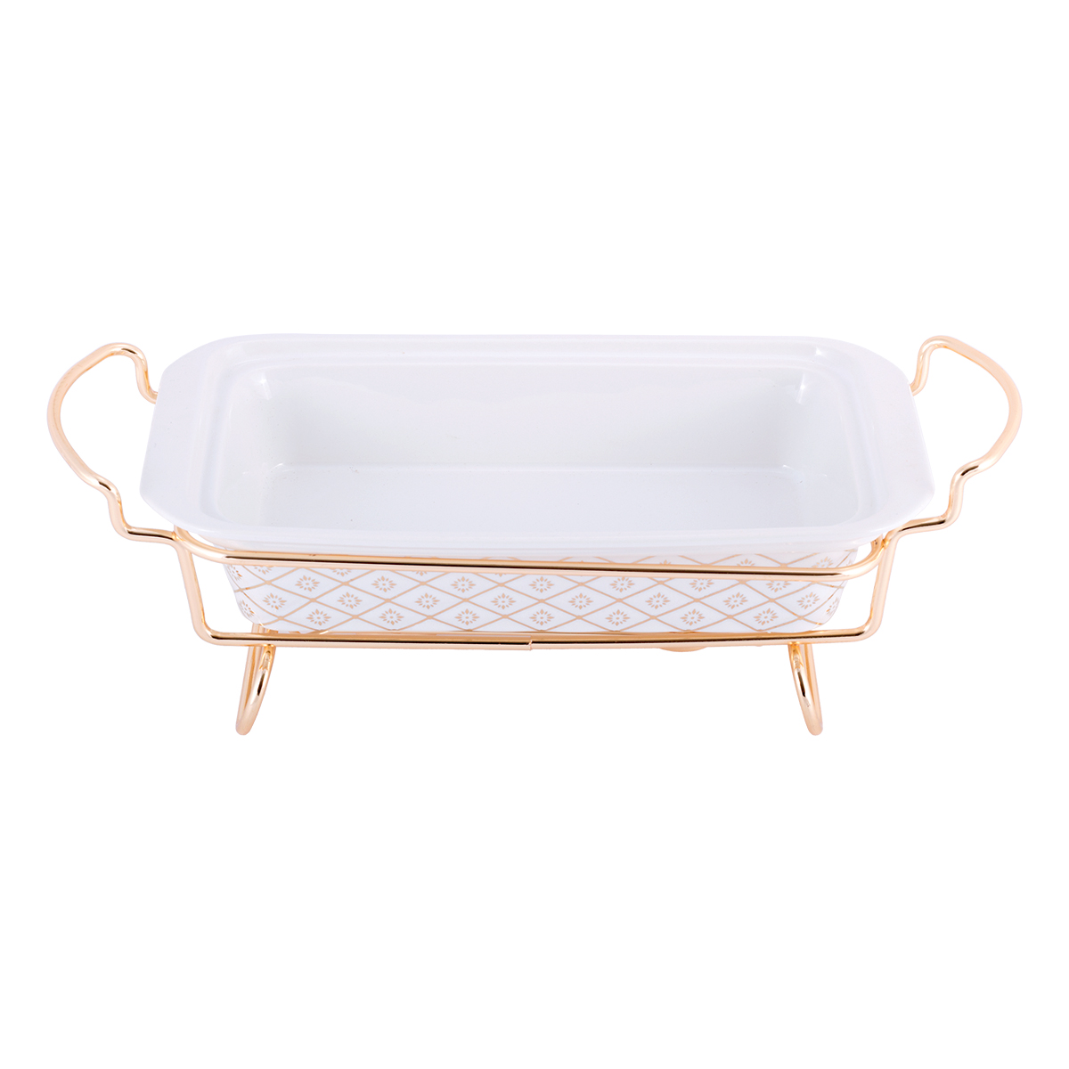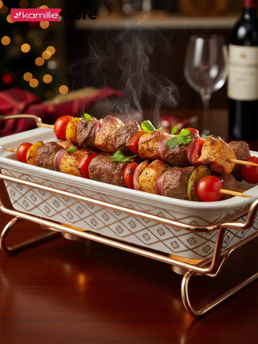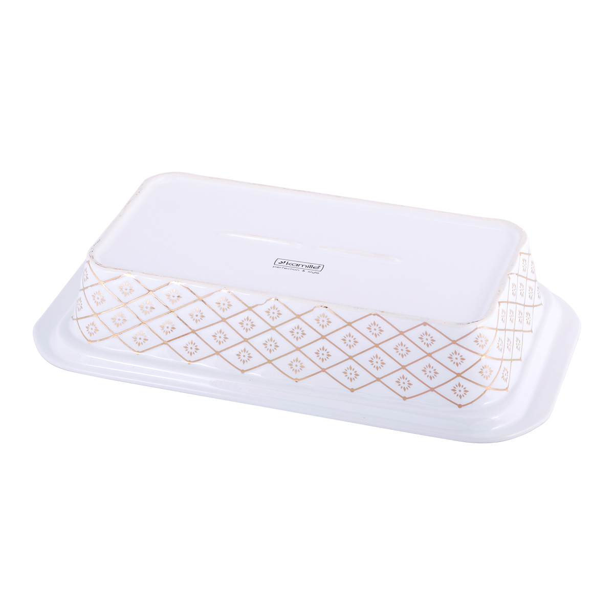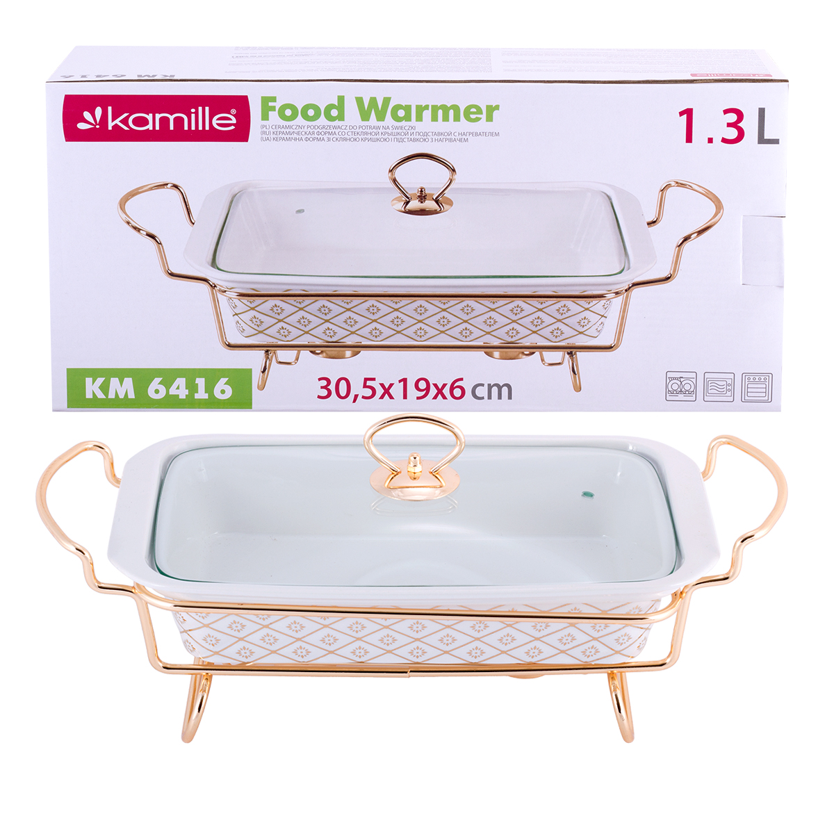 Керамический мармит Kamille — прекрасное приспособление для сервировки и подачи блюд. Он изготовлен из высококачественных материалов с применением современных технологий производства. Керамическая форма с крышкой подходит для использования в духовых и микроволновых печах, а в комплекте с ней идет удобная металлическая подставка с подсвечником для подогрева блюд. Такой мармит имеет привлекательный внешний вид, очень удобен в использовании, и гарантированно украсит Ваш праздничный стол.