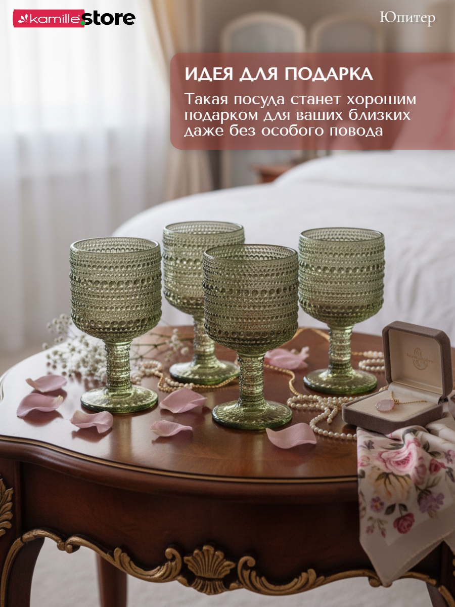 Бокалы Юпитер, выполнены из цветного стекла и смогут добавить яркости любому столу, стильный дизайн с отделкой в виде бусин добавляет элегантности. Такая посуда станет идеальным решением для праздничной или повседневной сервировки. Прочное стекло обеспечит прочность, долговечность и превосходный внешний вид изделиям надолго.