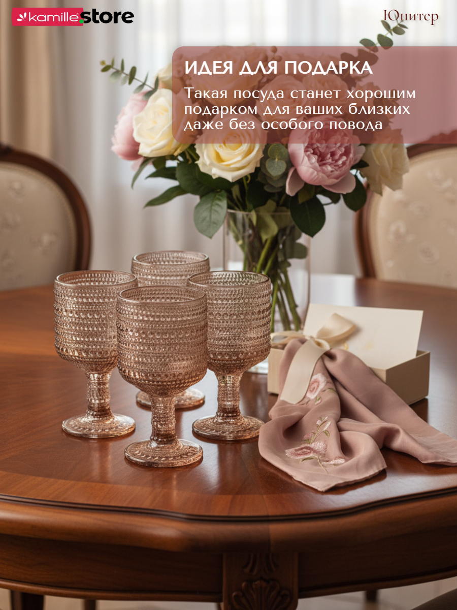 Бокалы Юпитер, выполнены из цветного стекла и смогут добавить яркости любому столу, стильный дизайн с отделкой в виде бусин добавляет элегантности. Такая посуда станет идеальным решением для праздничной или повседневной сервировки. Прочное стекло обеспечит прочность, долговечность и превосходный внешний вид изделиям надолго.
