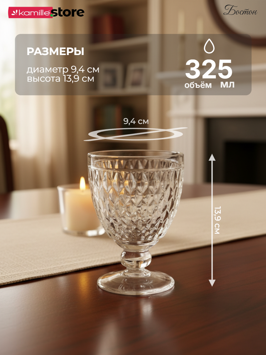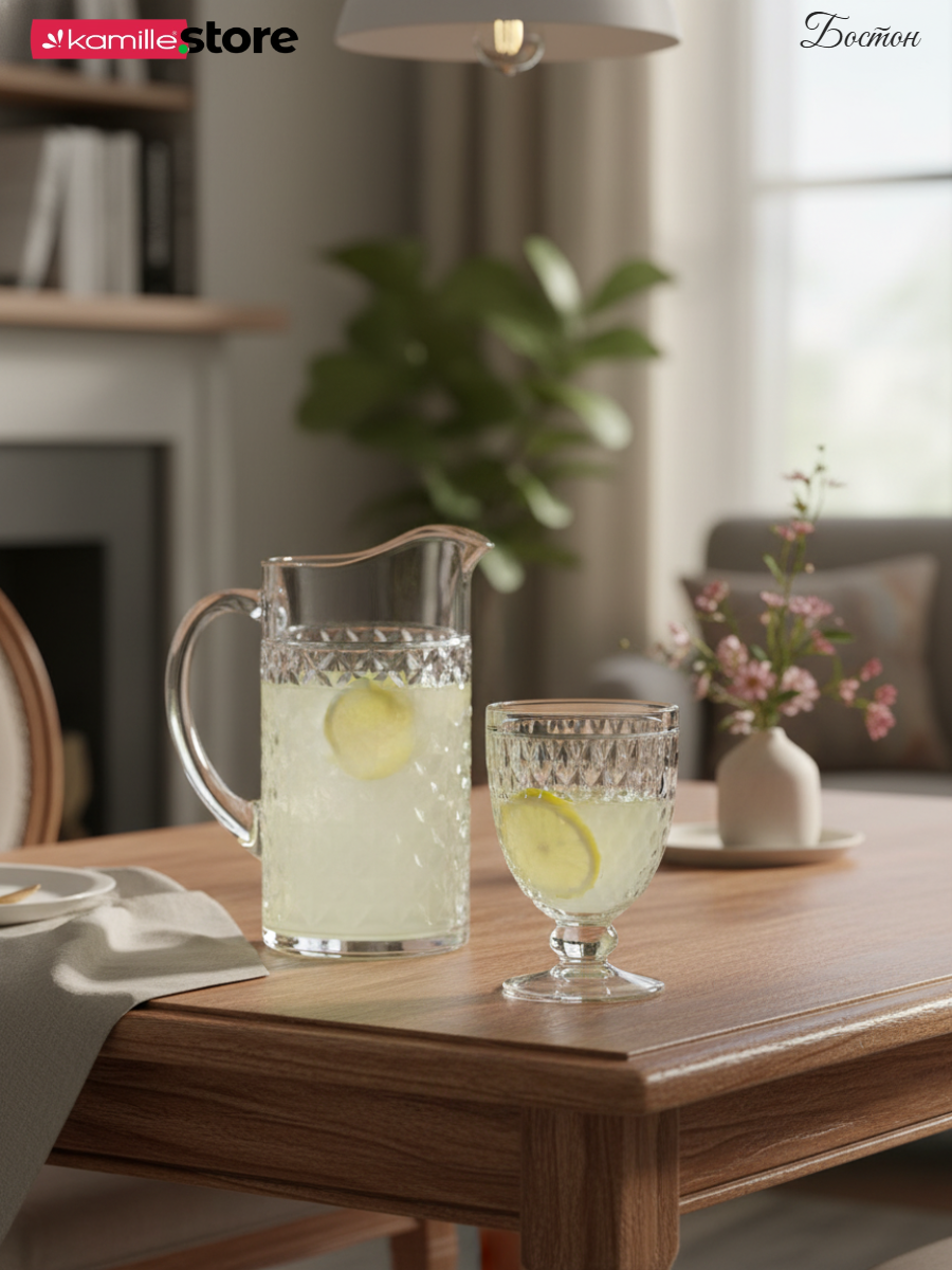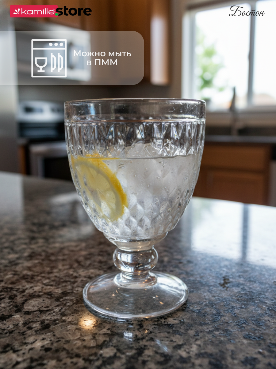 Стеклянные бокалы на низкой ножке с красивой алмазной огранкой создадут яркий акцент и прекрасно дополнят любую сервировку, будь то будничный стол или торжественная трапеза. Они идеально подойдут для воды или сока. Наслаждайтесь любимыми напитками красиво из этого стильного бокала. Почувствуйте удовольствие на вкус!