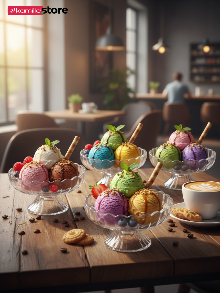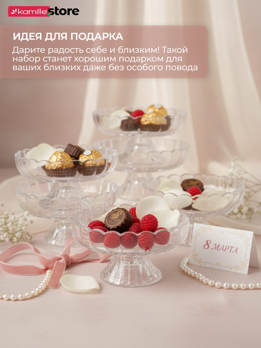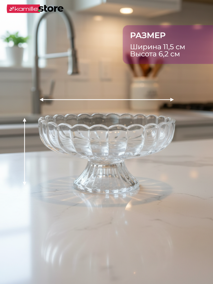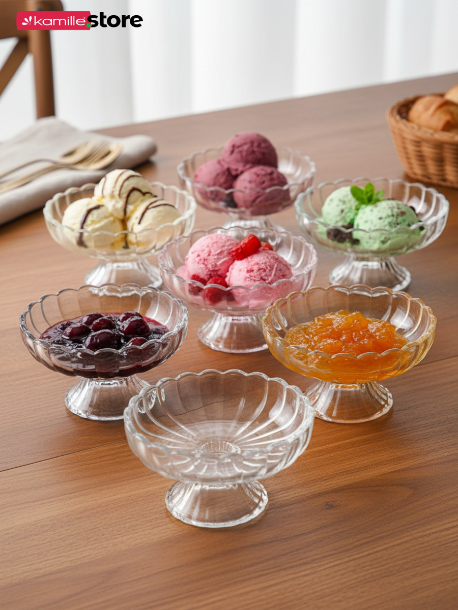 Стеклянные креманки станут незаменимыми помощниками при сервировке стола красивой посудой. Удобна форма позволяет подавать различные десерты, мороженое, снеки или закуски. Изготовлены из хрустального стекла с оригинальным дизайном, обладают высокой прозрачностью и прочностью, что позволяет наслаждаться видом и вкусом продукта. Посуда прекрасно впишется в интерьер Вашей кухни и станет достойным дополнением к кухонному инвентарю.