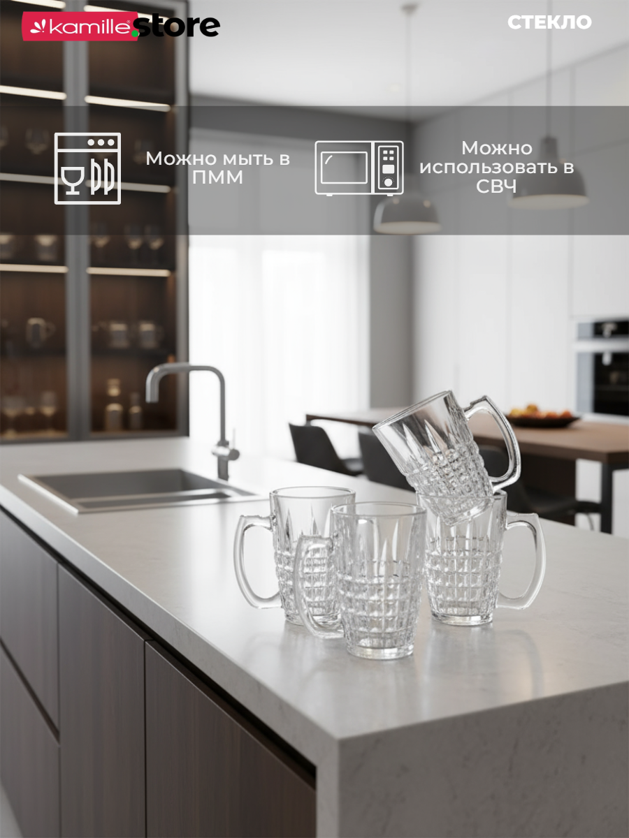 Набор стеклянных кружек - станет хорошим выбором для ценителей качественной посуды. В этом комплекте есть всё необходимое, чтобы наслаждаться ароматным чаем или кофе дома или в офисе. Каждая кружка выглядит элегантно и стильно. Благодаря своей долговечности и изысканному внешнему виду, стекло является превосходным вариантом для повседневного использования.