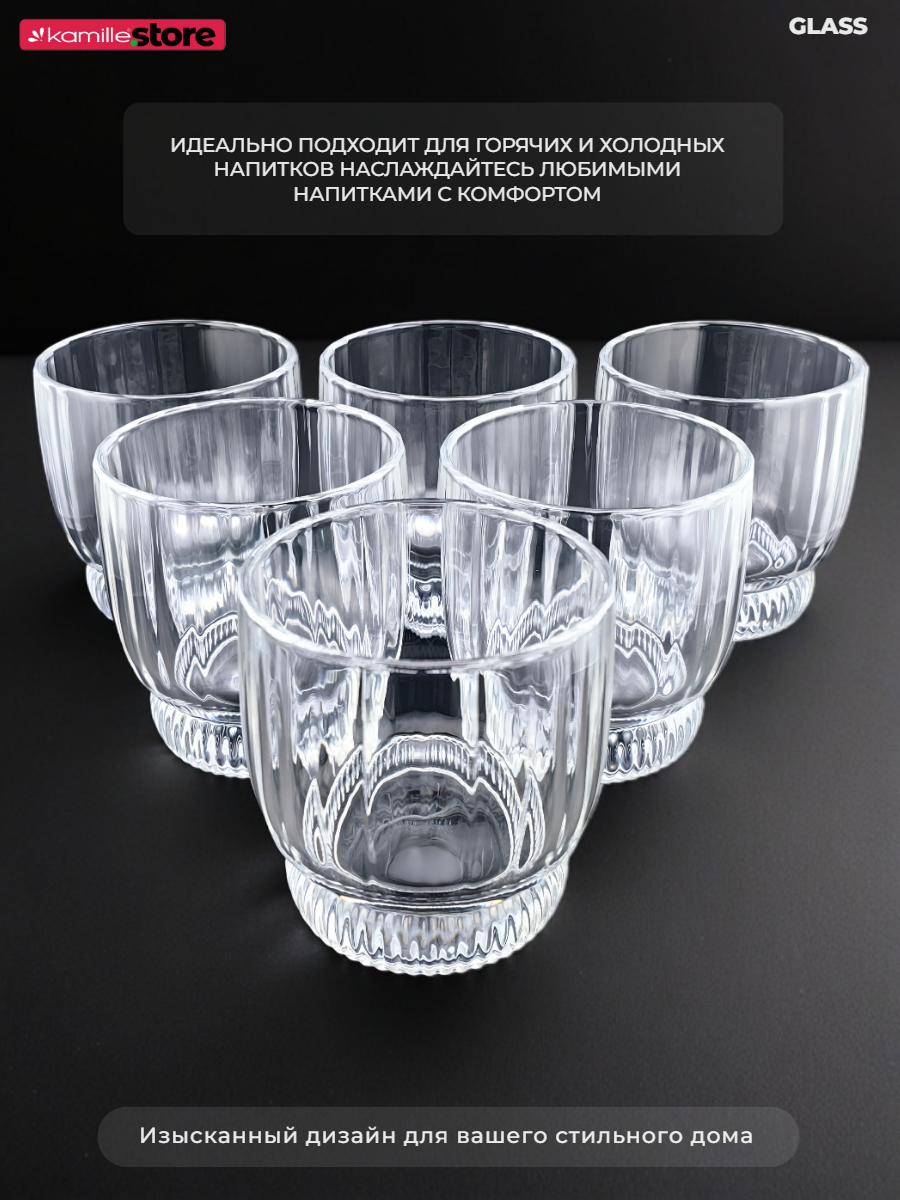 Объем каждого стакана составляет 300 мл, чего достаточно для различных напитков. Стильный дизайн и удобная форма посуды станут идеальным решением для дружеских посиделок и сервировки стола.