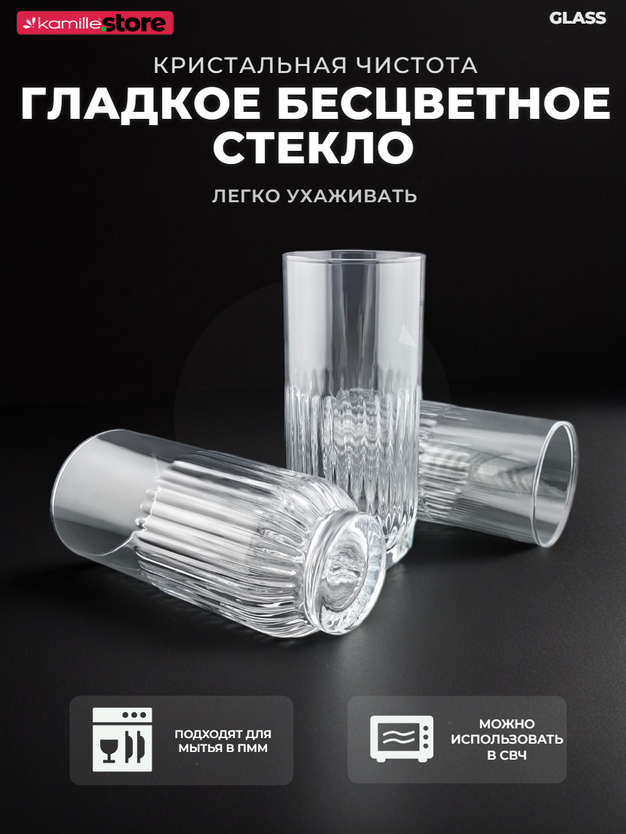 Сервировка дополненная такой посудой, выглядит по-настоящему роскошно. Все изделия выполнены из высококачественного бесцветного стекла. Безупречная прозрачность стаканов позволяет в полной мере насладиться видом и вкусом любимых напитков.