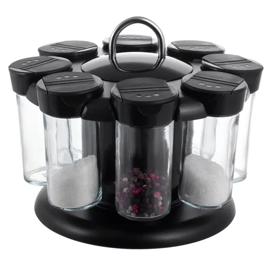 Набор емкостей для специй на круглой подставке Kamille KM-7050 идеально подойдет для хранения различных приправ и специй. Благодаря прозрачным стенкам баночек, можно видеть их содержимое. Такой набор не только стильно дополнит интерьер кухни, но и станет незаменимым помощником в приготовлении ваших любимых блюд С помощью функционального набора для специй вы сможете с легкостью завершить Ваше блюдо, добавив к нему свой темперамент и характер. Все 8 баночек сделаны из стекла, они оснащены герметично закрывающимися крышками, поэтому исключительный аромат каждой приправы не испарится со временем. Такой набор станет идеальным дополнением при приготовлении любого блюда, а благодаря удобной круглой подставке спецовники всегда будут под рукой, и их стильный дизайн подойдет к интерьеру любой кухни. Также такой набор станет отличным подарком.