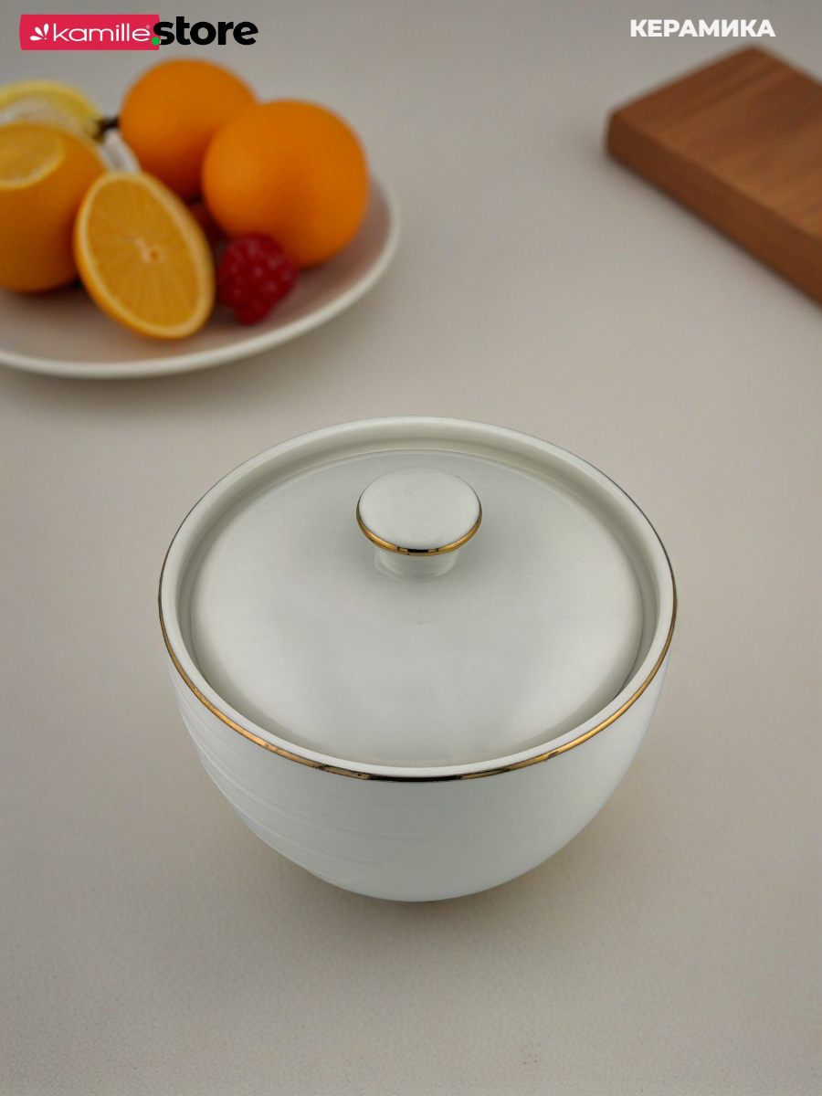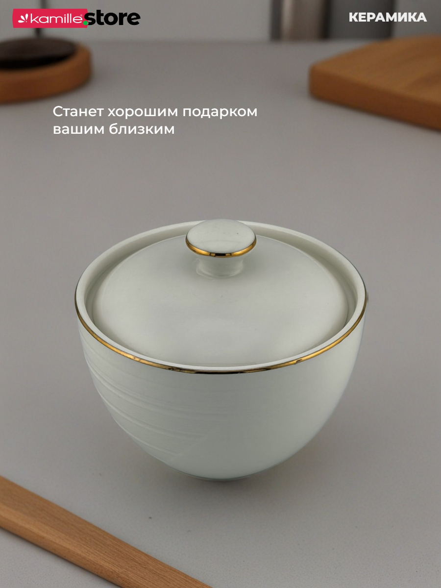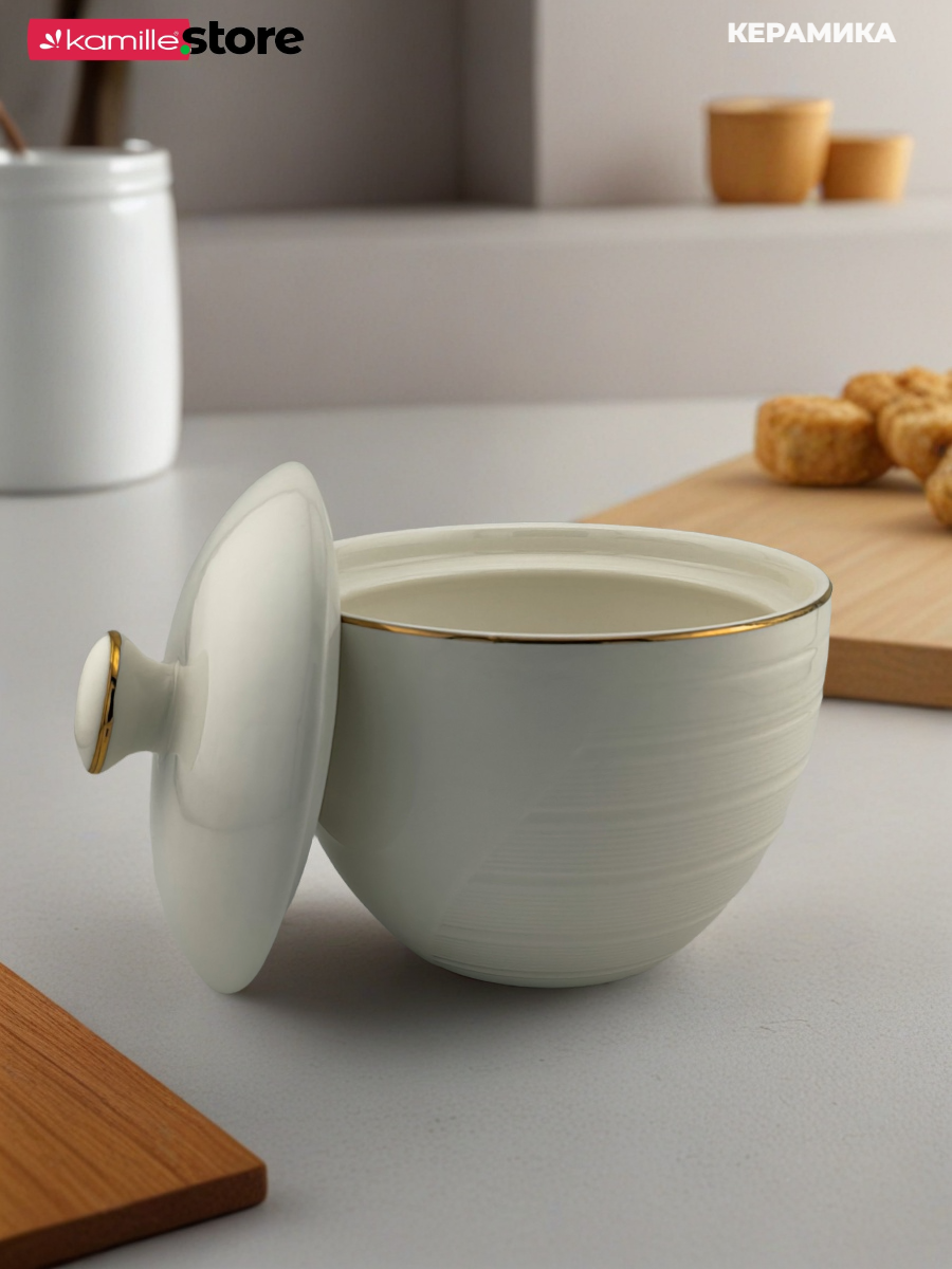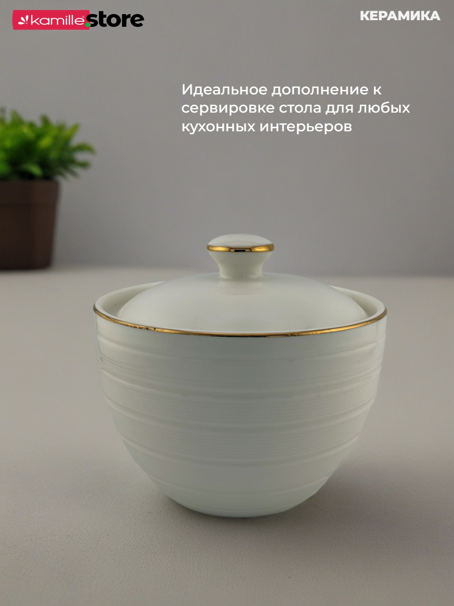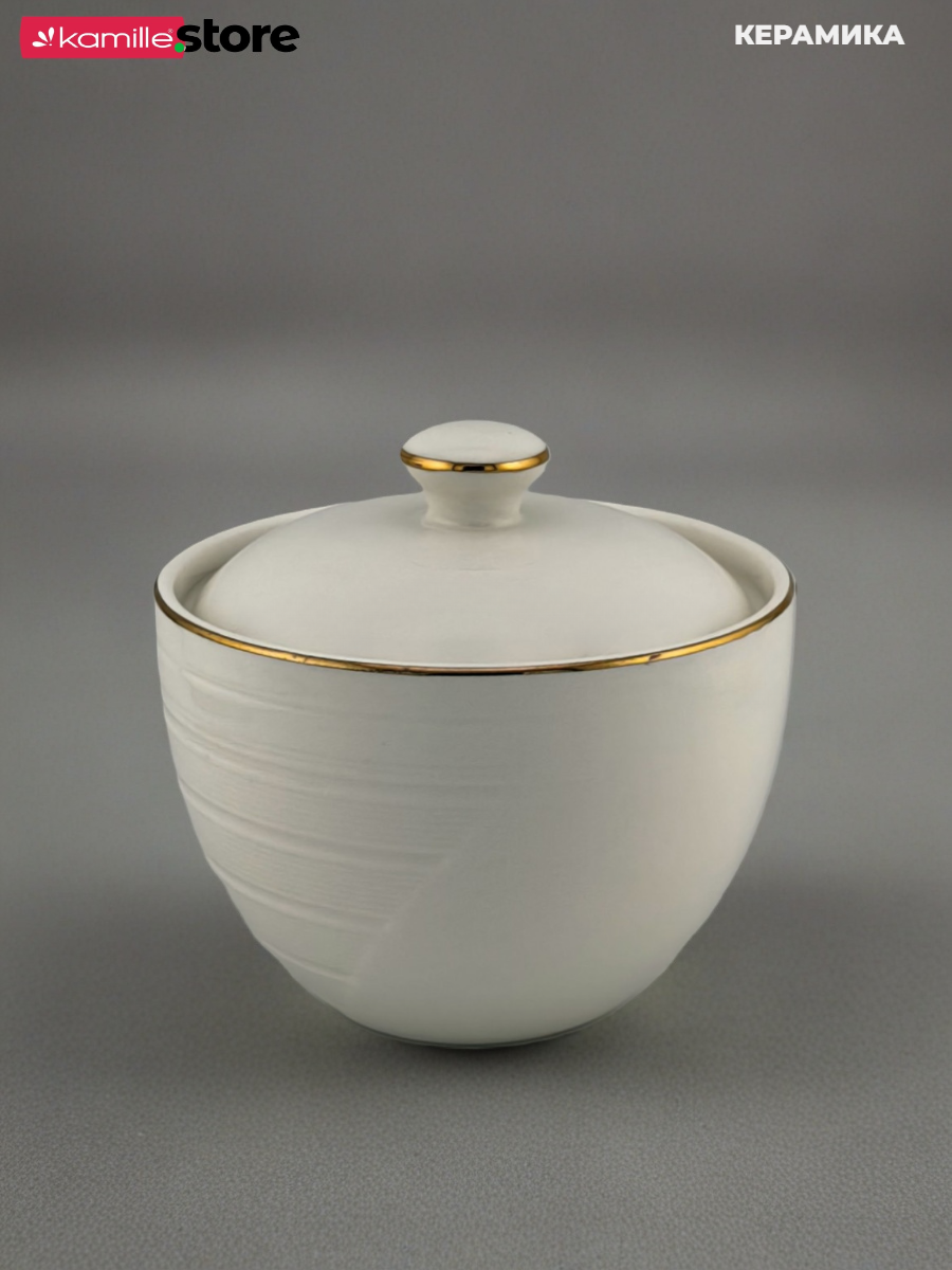 Сахарница керамическая 420 мл. с золотой обводкой