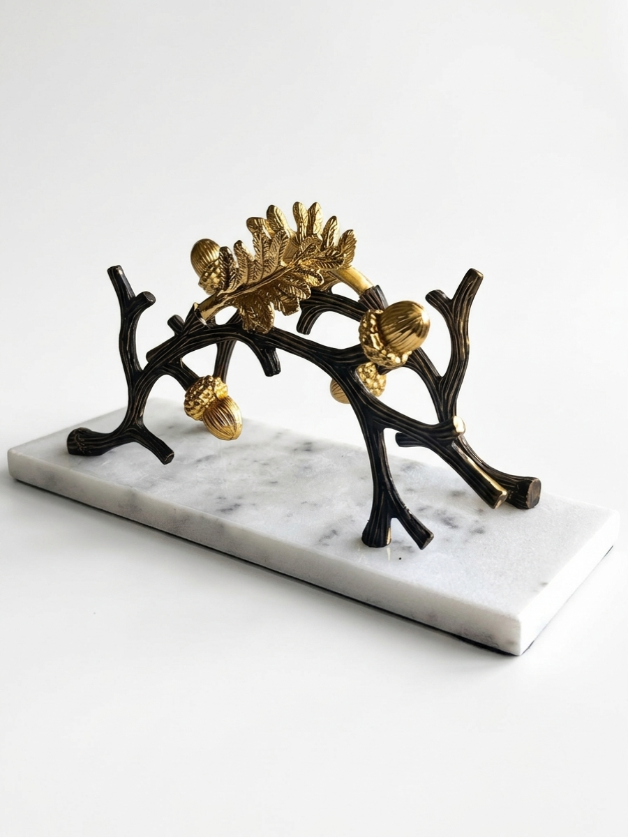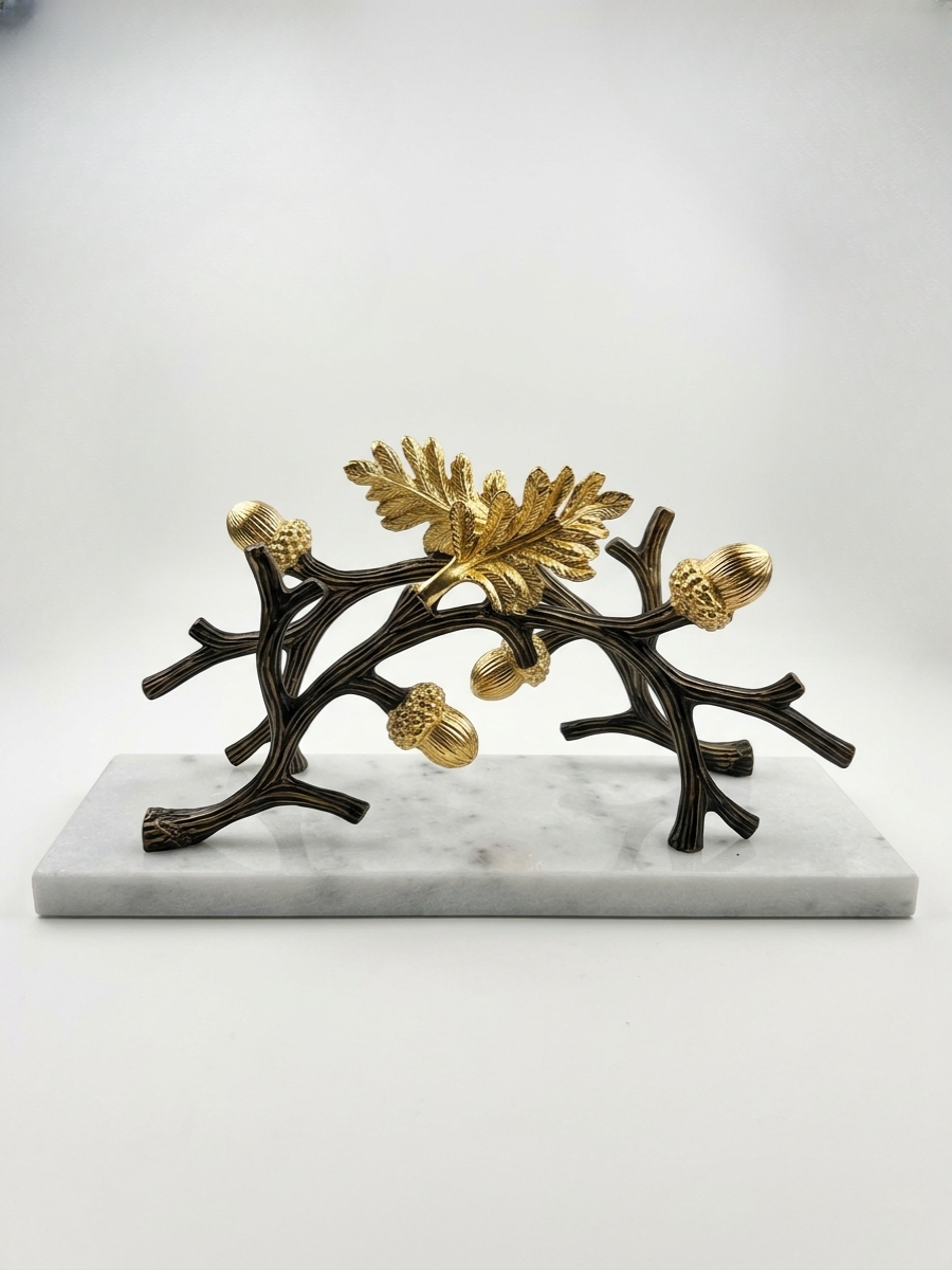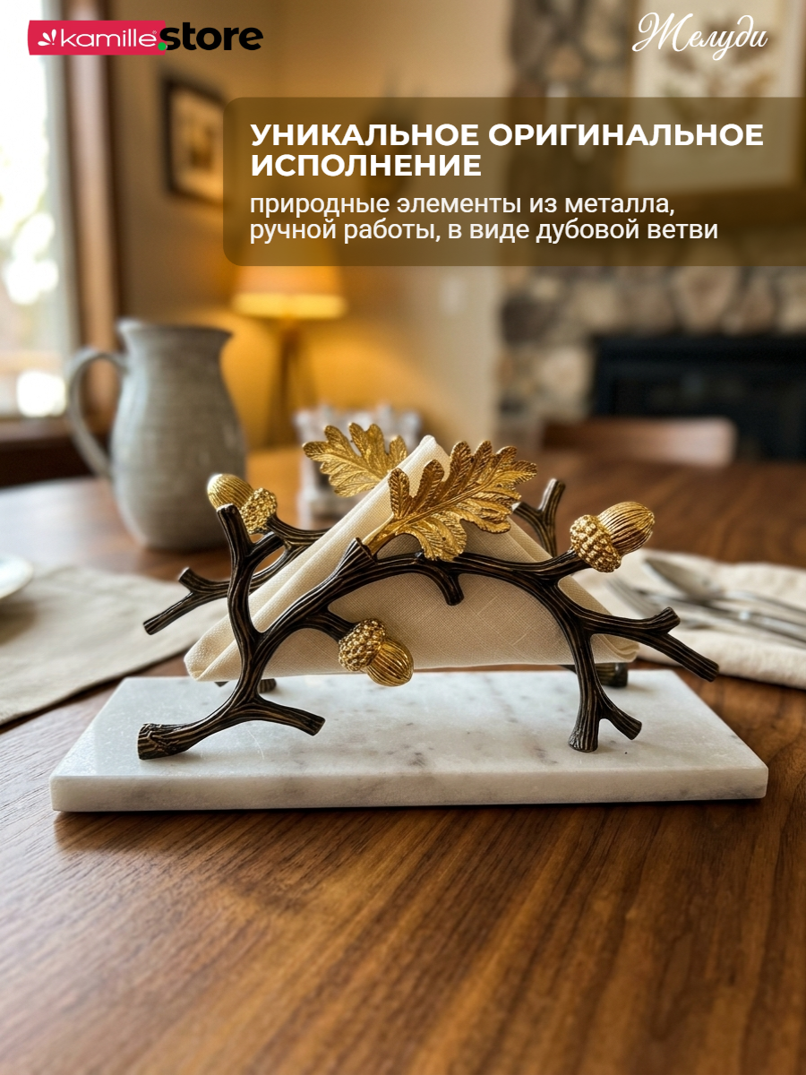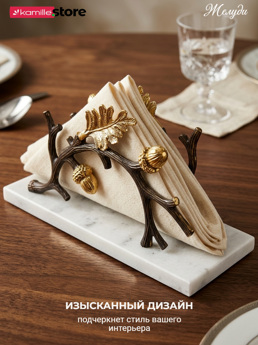 Представляем вашему вниманию, шикарную салфетницу - изготовлена вручную, основание из кварцевого камня с мраморным узором, с изящным металлическим декором "Дубовая ветвь". Создана для того, чтобы добавить изысканности вашему интерьеру и придать уютной обстановке штрих оригинальности. Такой аксессуар станет украшением любого дома, одновременно привнося в него красоту и функциональность.
