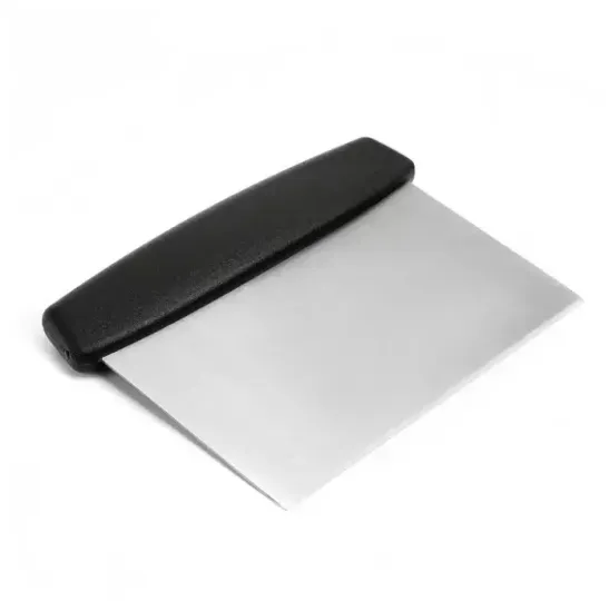 Шпатель-скребок кондитерский металлический с ручкой и разметкой необходим каждому кондитеру: он позволяет нарезать тесто, придать рельеф поверхности выпечки или сделать её идеально ровной. С его помощью можно буквально за 2 круга идеально выровнять торт на вращающейся подставке. Также с его помощью можно аккуратно отсоединить продукт от противня. Очень удобен для работы с шоколадом.