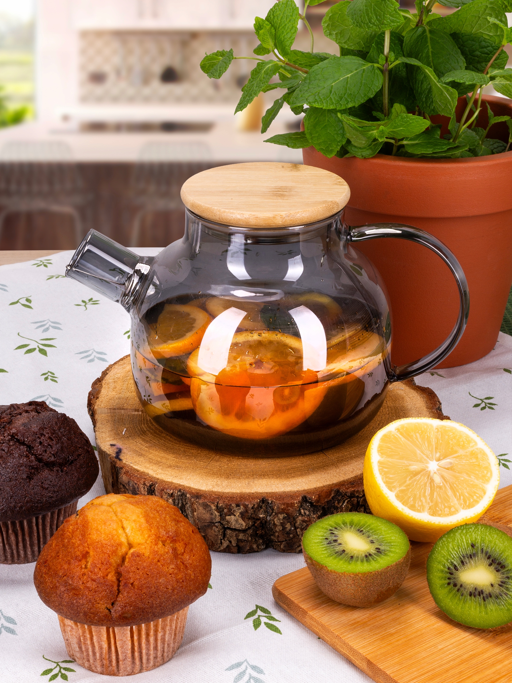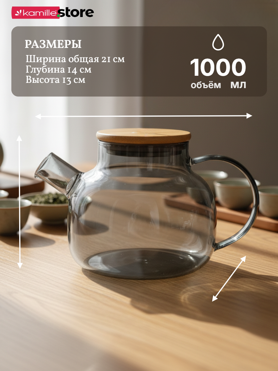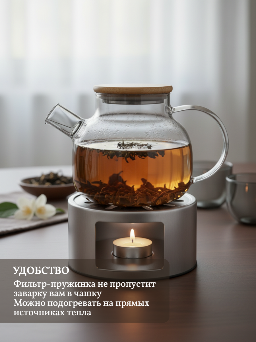 - Материал чайника: термостойкое боросиликатное стекло.