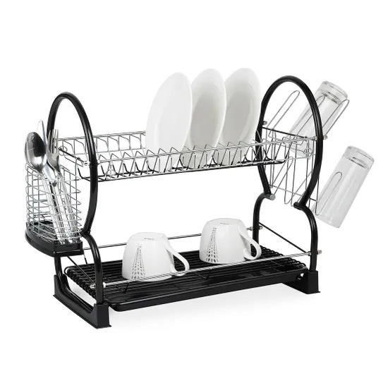Сушилка для посуды Kamille KM-0765B двухъярусная 55х24,5х40 см. черная
