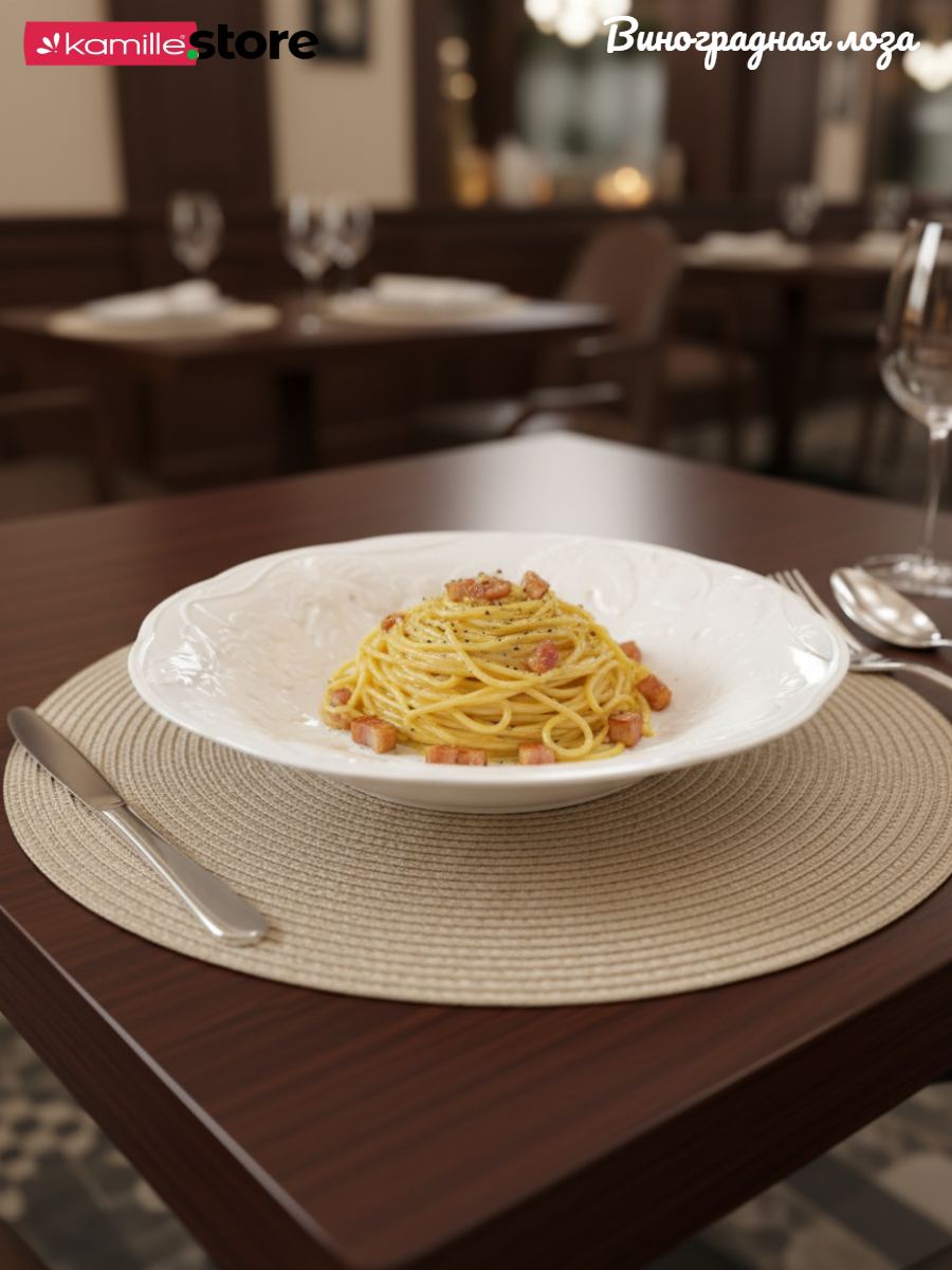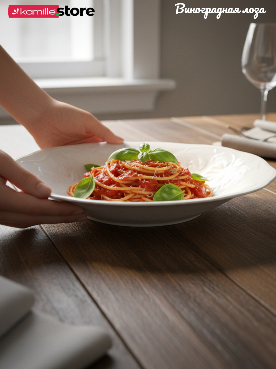 Глубокая универсальная тарелка, для разных сценариев сервировки - для пасты, порционный салатник, суповая, для закусок.