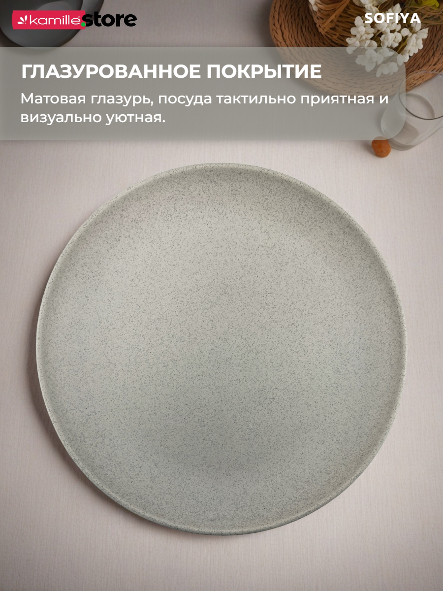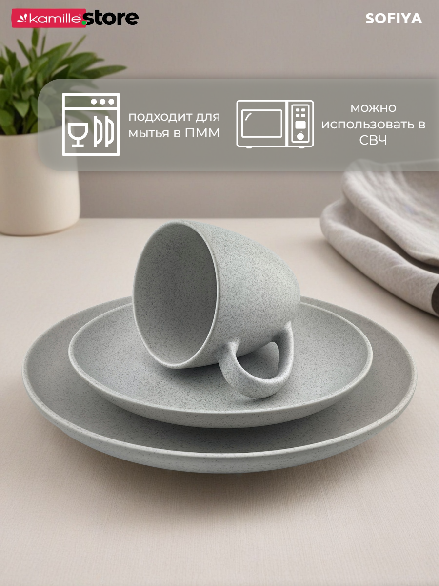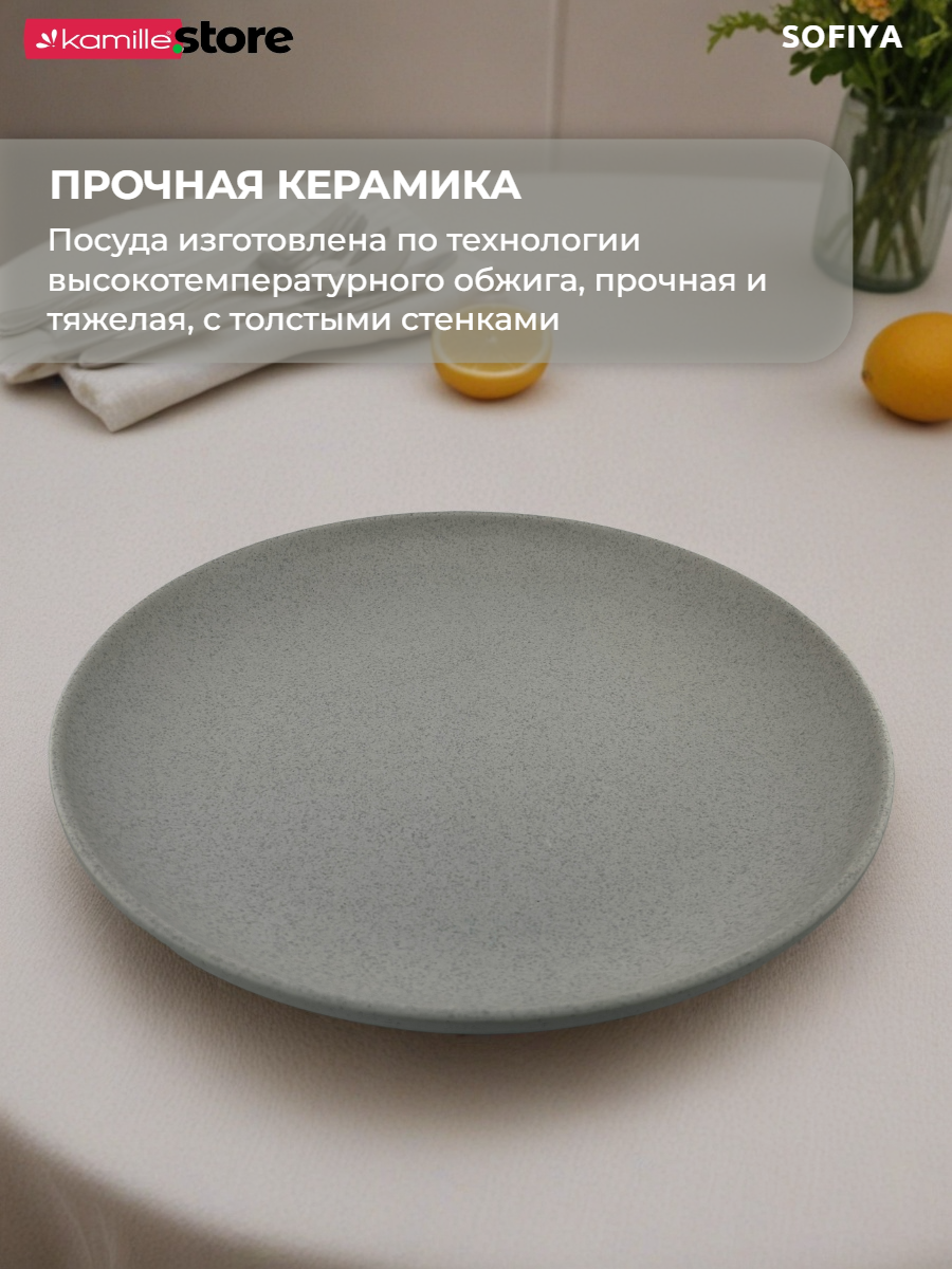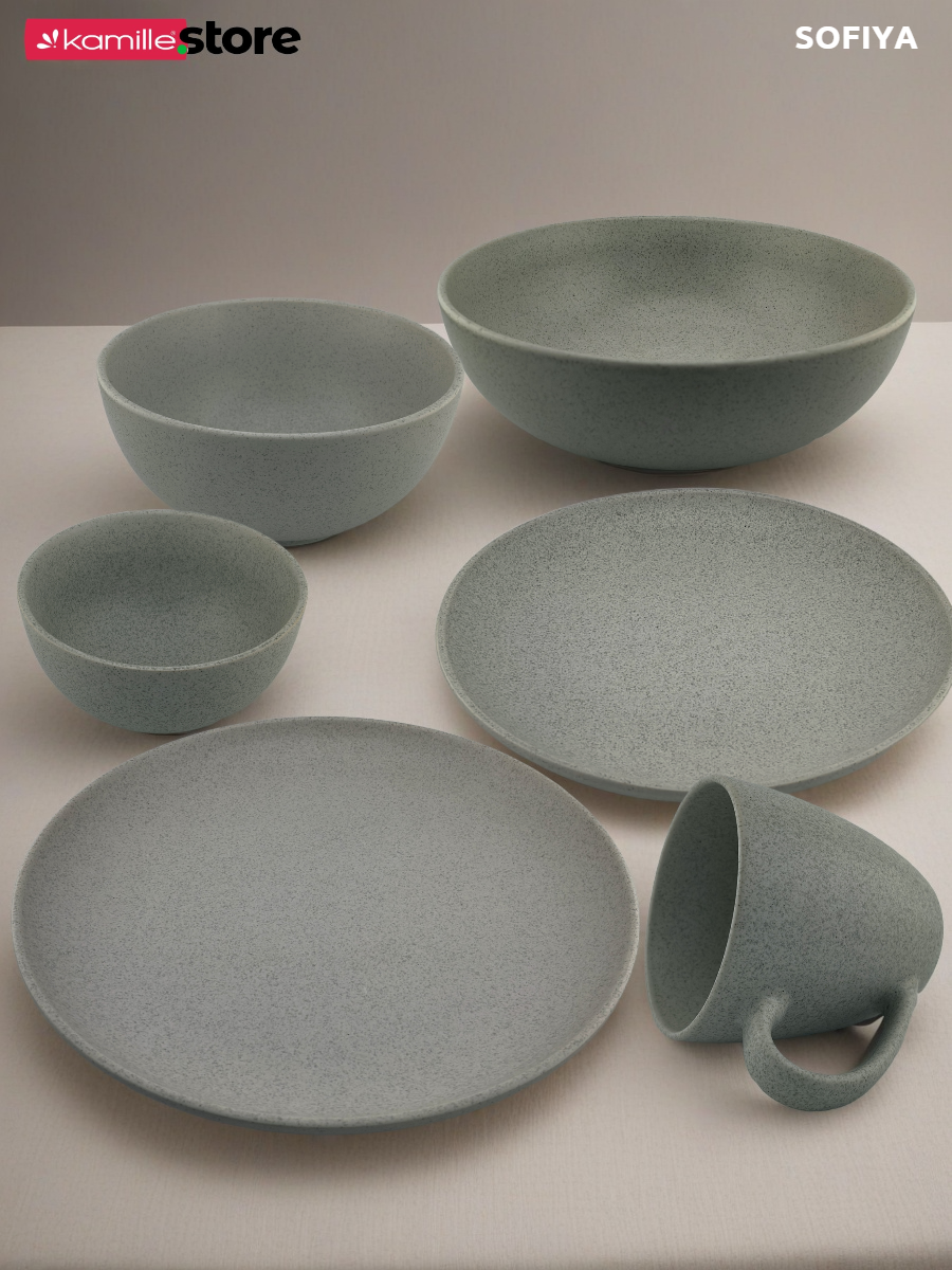 Столовый обеденный сервиз из коллекции SOFIYA - это качественная, привлекательная и очень практичная посуда. Все изделия изготовлены по технологии высокотемпературного обжига из качественной керамики с крошкой, в сочетании с прочной матовой глазурью посуда выглядит так будто сделана из цельного камня, приятная тактильно и привлекательная визуально.