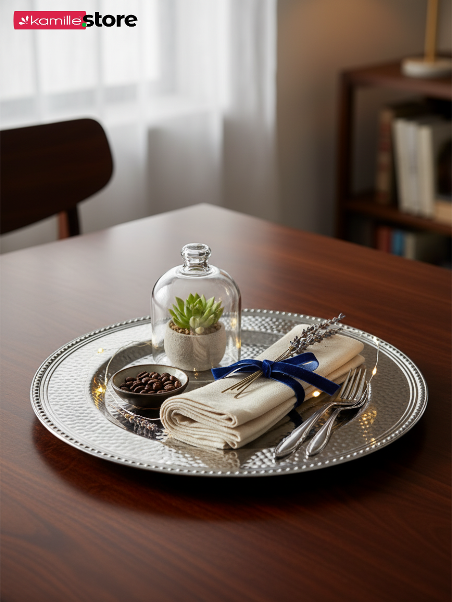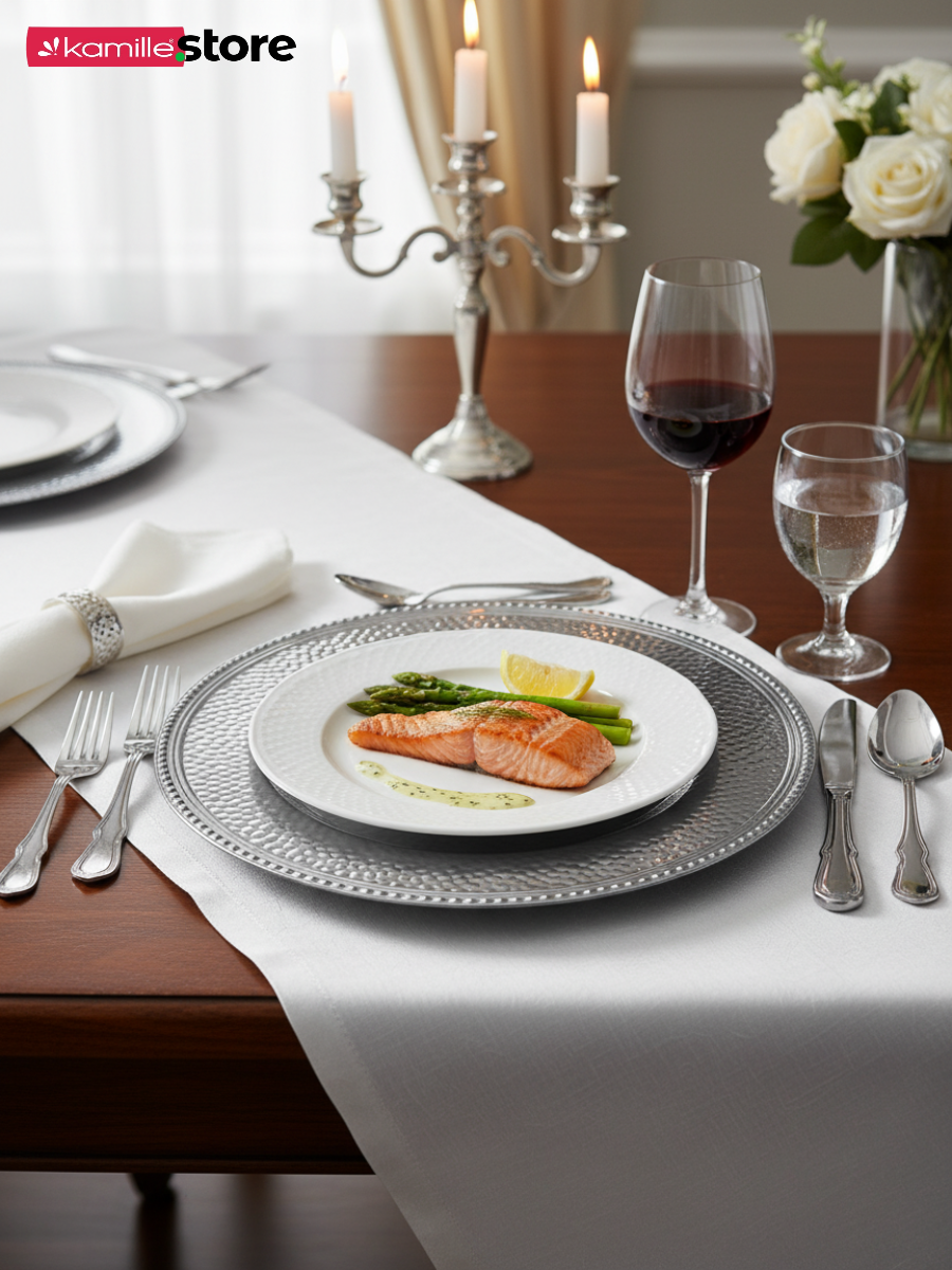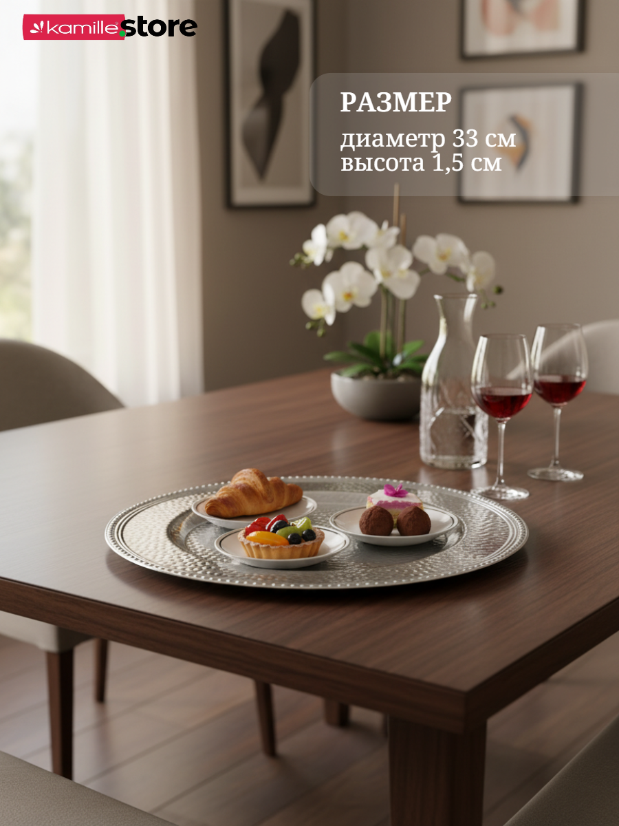 Представляем вашему вниманию стильную сервировочную тарелку диаметром 33 см! Это универсальная посуда - используйте её как подстановочную тарелку для яркой праздничной или повседневной сервировки, как блюдо или поднос для подачи самых разных продуктов.