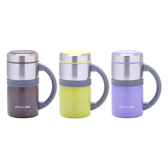 Термокружка Kamille обладает высоким качеством, надежностью, компактными размерами и эстетичным дизайном. Такой термос станет незаменимым в машине, на отдыхе или в путешествии.