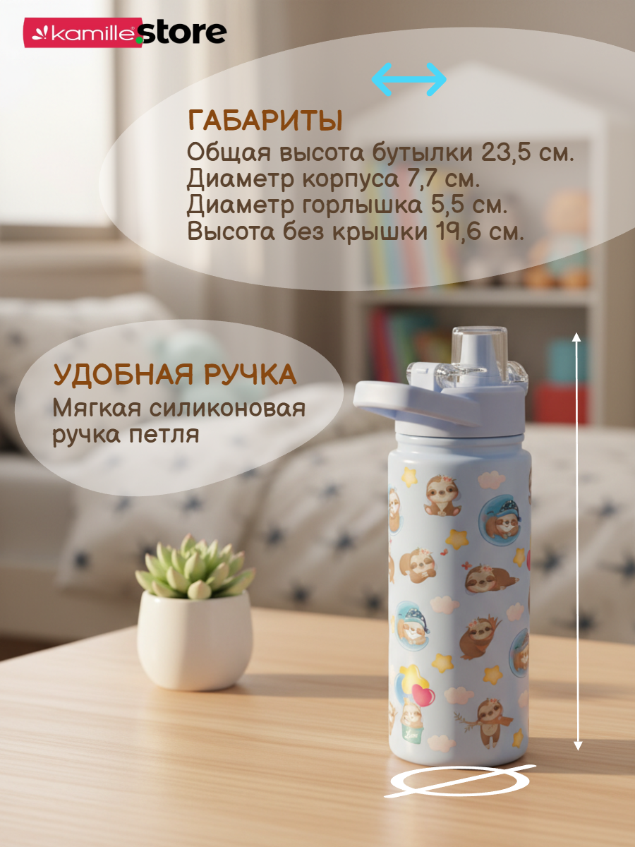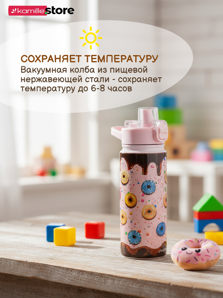Детский термос Kamille порадует ваше чадо ярким 3D рисунком и удобством в использовании, он обладает высоким качеством, надежностью и удобным размером. Такой термос станет незаменимым аксессуаром на прогулках и в повседневной жизни.