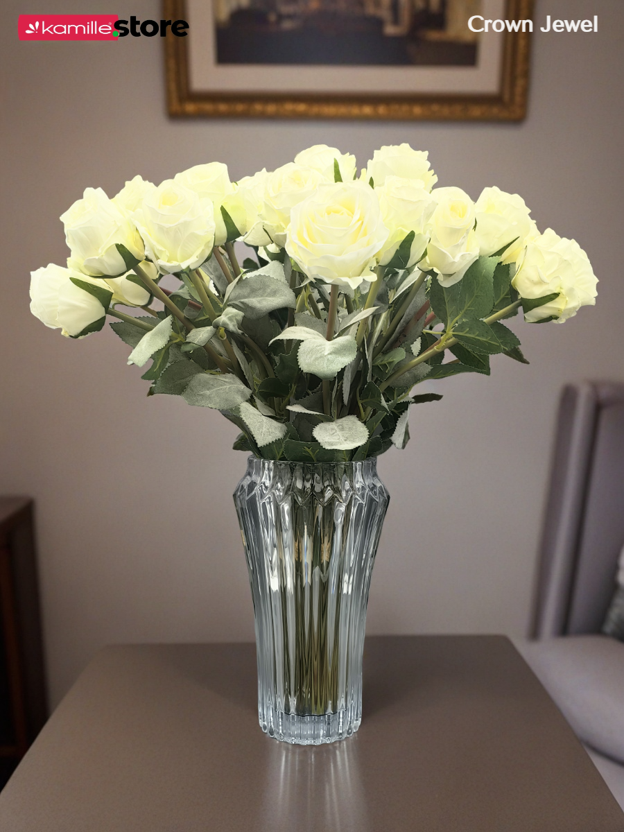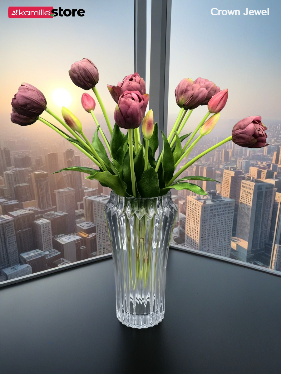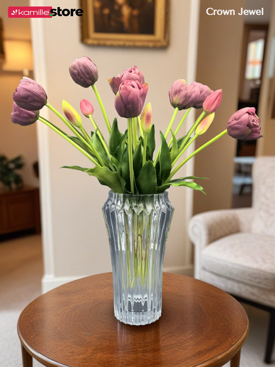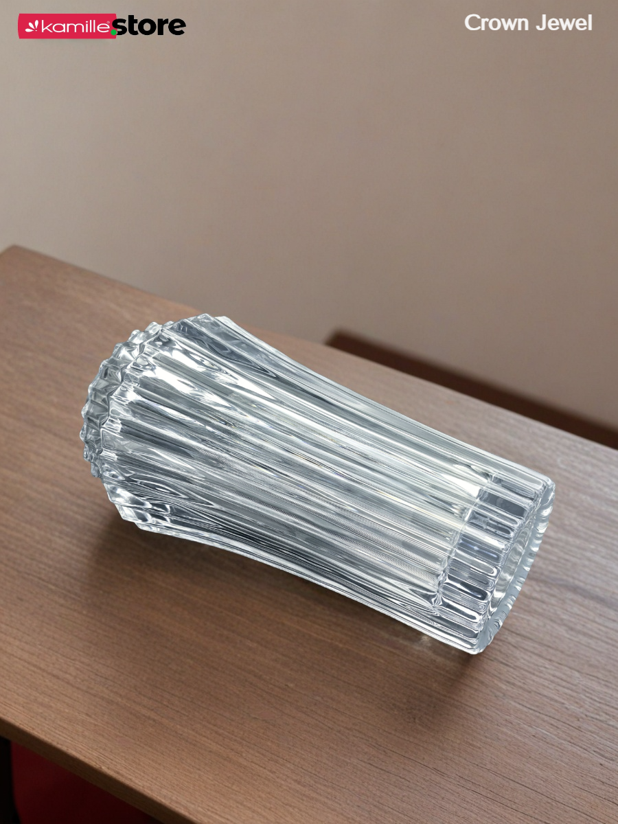 Перед Вами невероятно эффектная стеклянная ваза - массивный корпус из бесцветного стекла, рельефная круглая форма, ваза тяжелая и устойчивая, такой предмет займет достойное место в вашем интерьере или в интерьере ваших близких, она будет не просто дополнением, а станет ярким акцентом и подойдет для абсолютно любого букета живых или искусственных цветов, или сухоцветов.