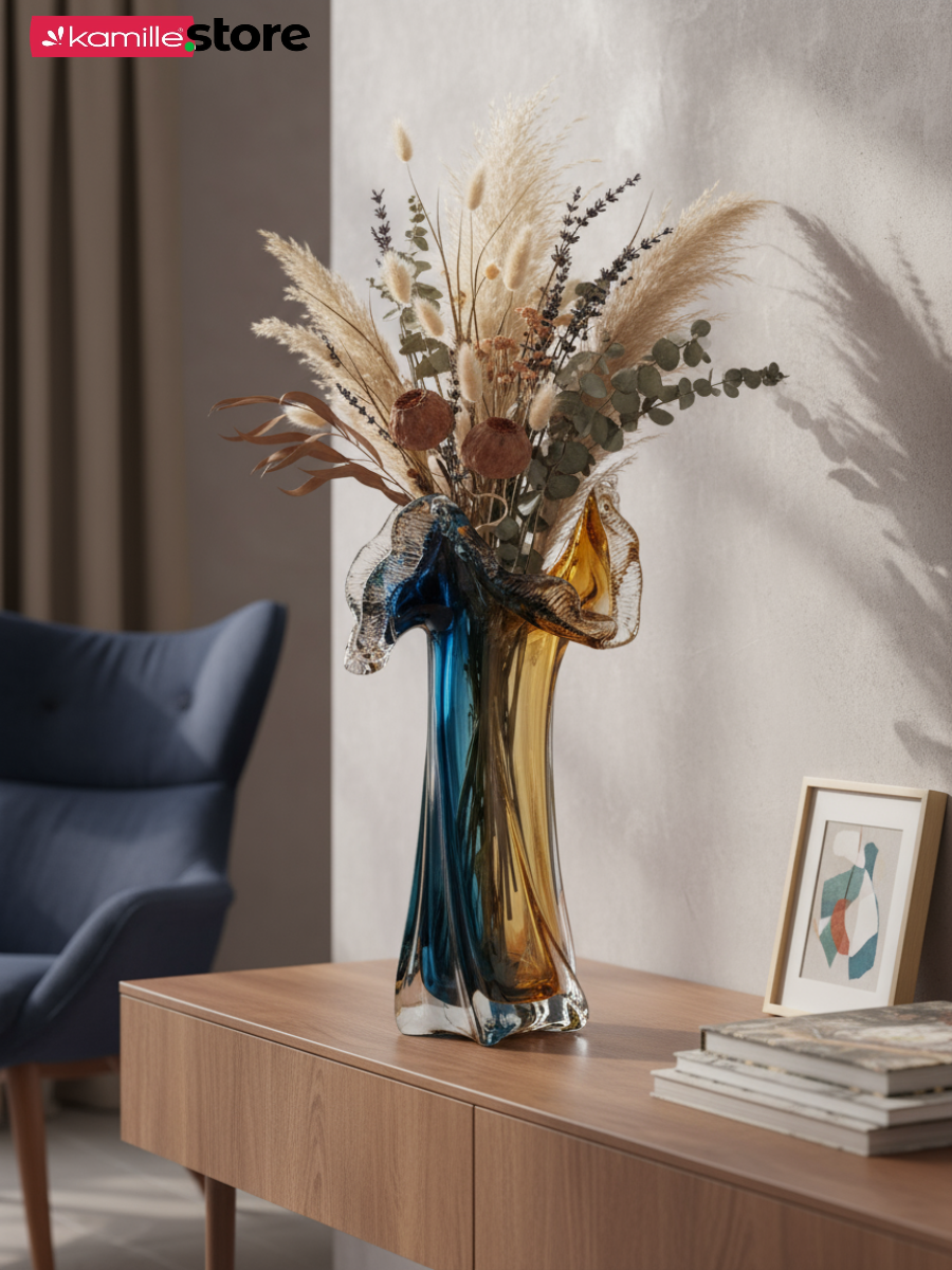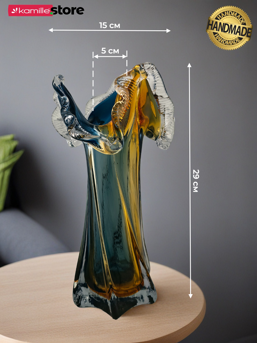 Представьте, как ярко такая ваза будет выглядеть у вас дома, в интерьере, или в интерьере ваших близких! Она будет не просто дополнением, а станет ярким акцентом и подойдет для абсолютно любого букета живых или искусственных цветов, или сухоцветов.