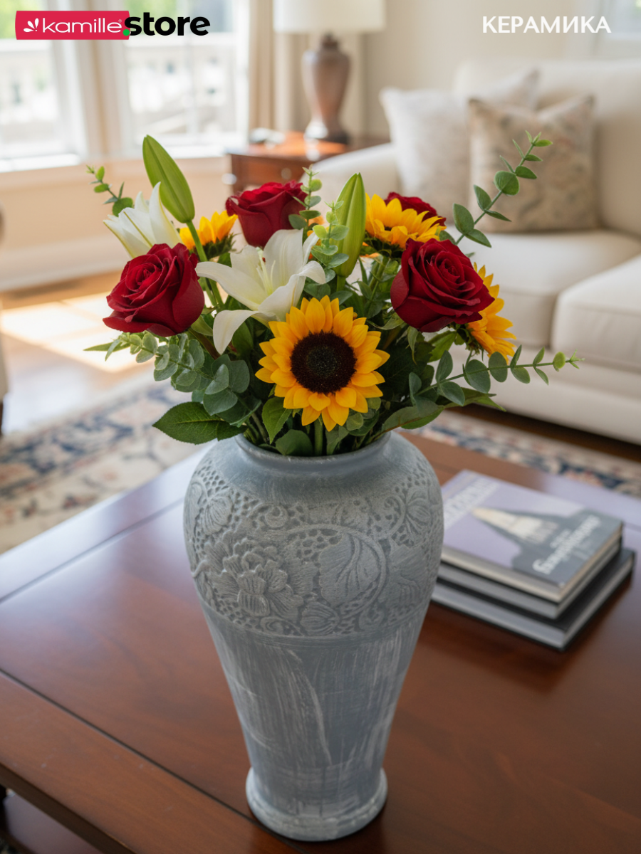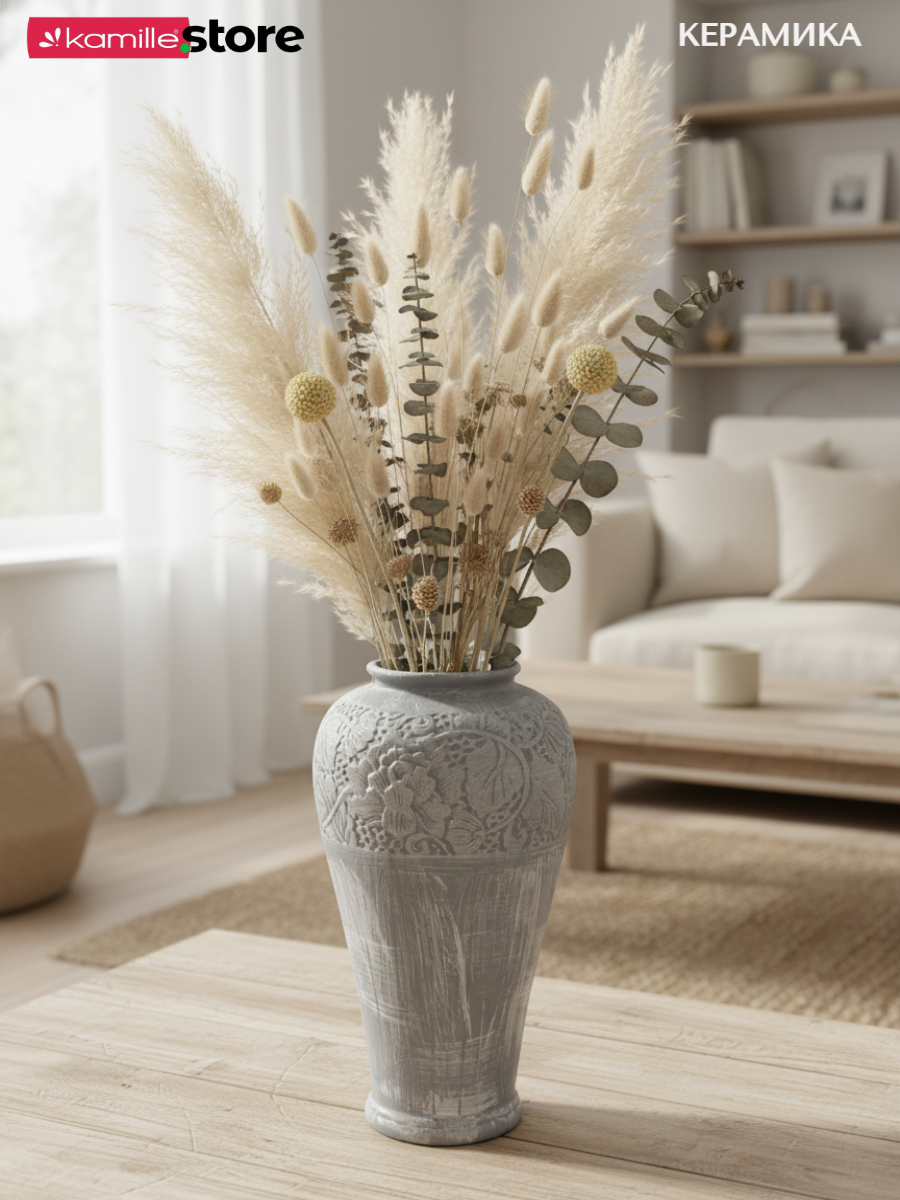 Представьте, как ярко такая ваза будет выглядеть у вас дома, в интерьере, или в интерьере ваших близких! Она будет не просто дополнением, а станет ярким акцентом и подойдет для абсолютно любого букета живых или искусственных цветов, или сухоцветов.
