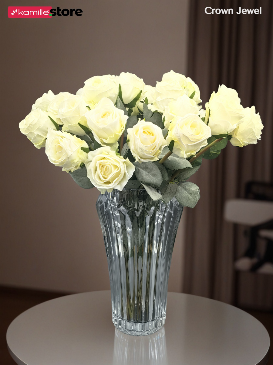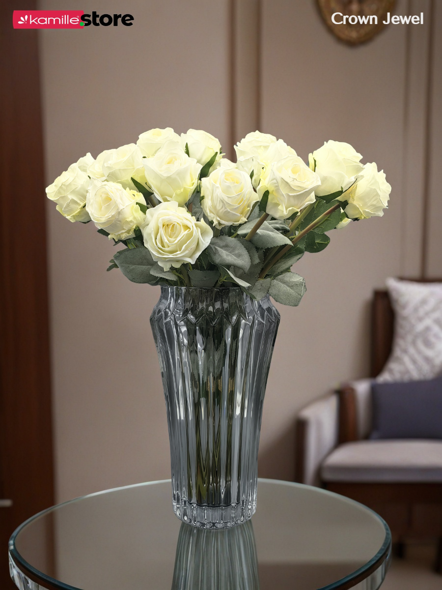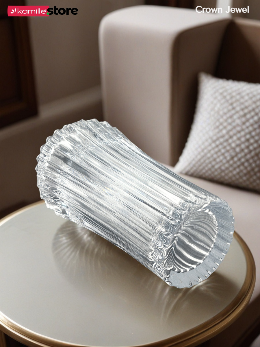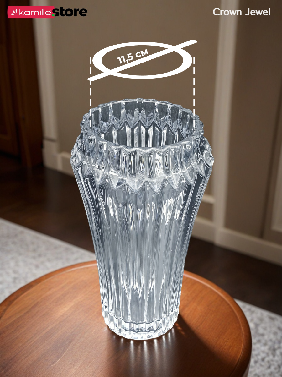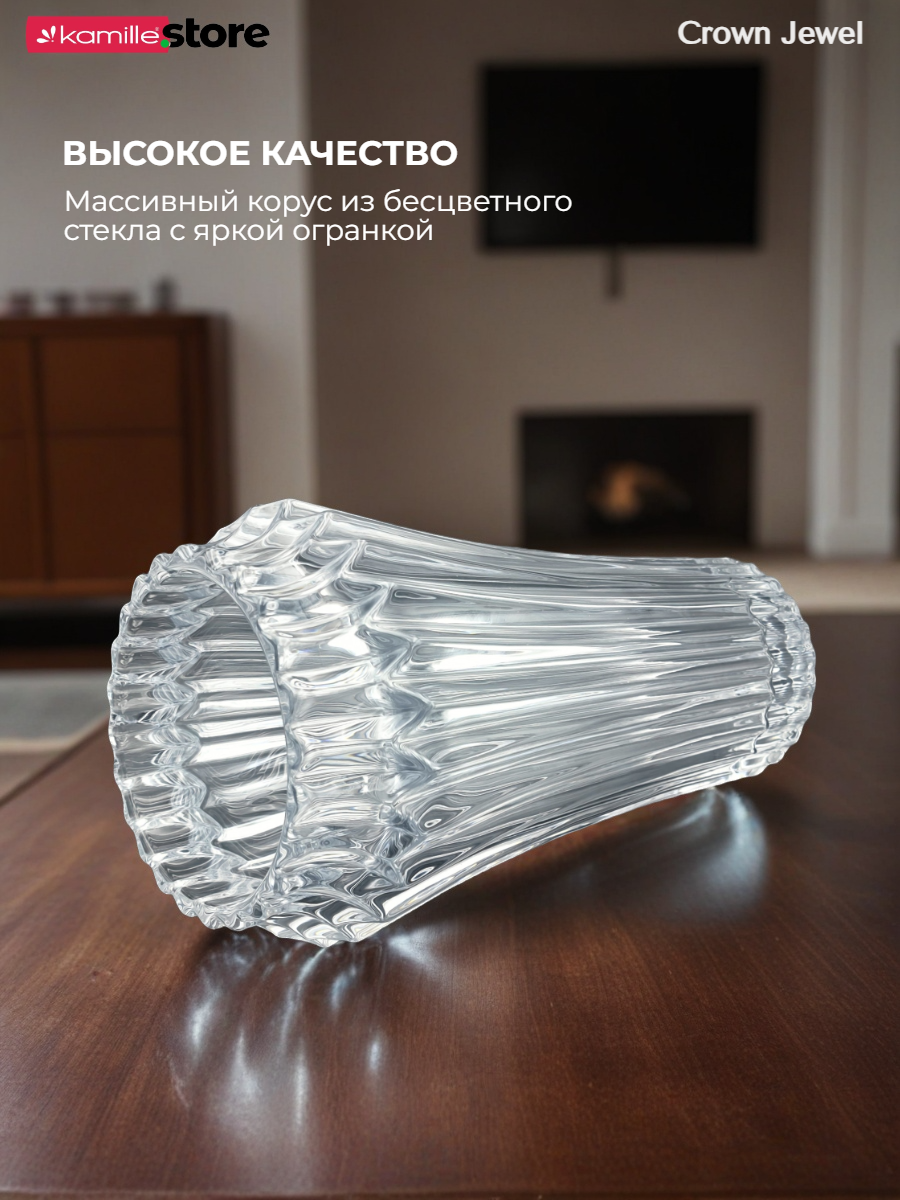 Перед Вами невероятно эффектная стеклянная ваза - массивный корпус из бесцветного стекла, рельефная круглая форма, ваза тяжелая и устойчивая, такой предмет займет достойное место в вашем интерьере или в интерьере ваших близких, она будет не просто дополнением, а станет ярким акцентом и подойдет для абсолютно любого букета живых или искусственных цветов, или сухоцветов.