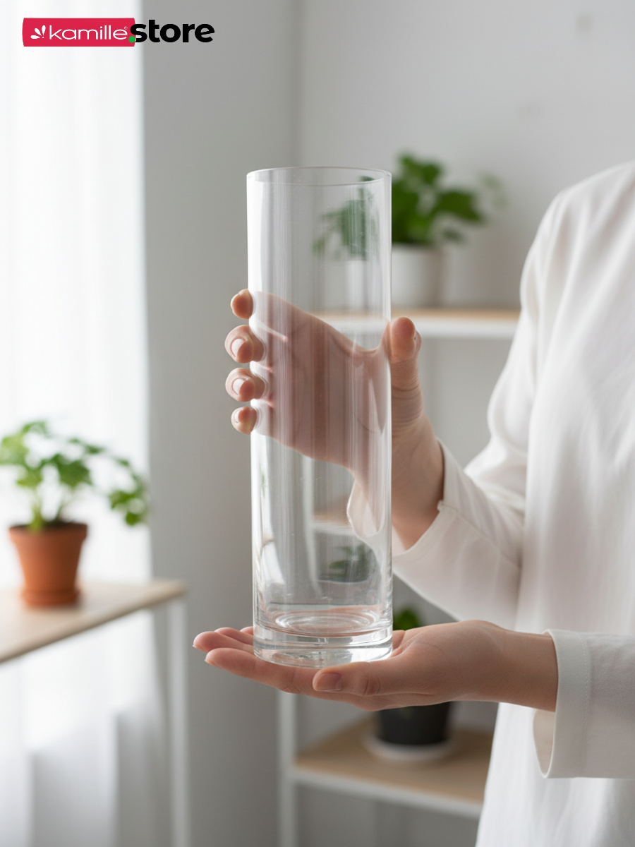 Перед Вами простая, но в тоже время стильная ваза, форма в виде трубки диаметром 6 см и высотой 20 см, прозрачное стекло, утолщенное дно для большей устойчивости.