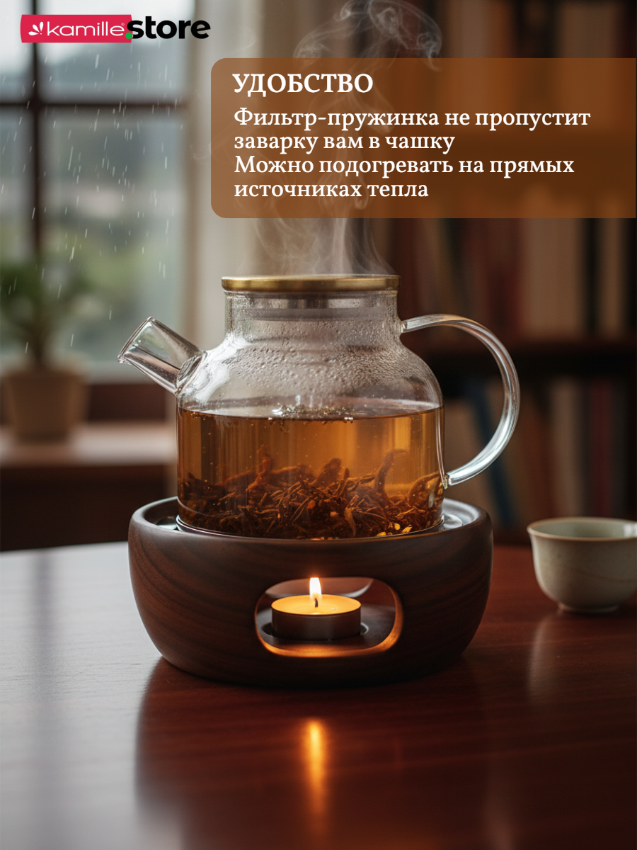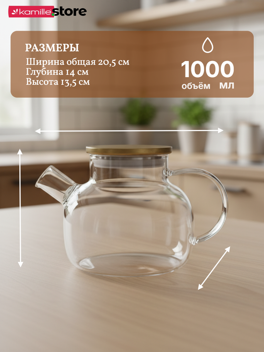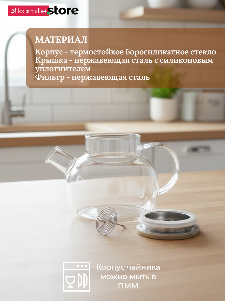 - Материал чайника: термостойкое боросиликатное стекло.