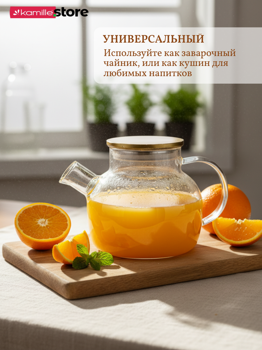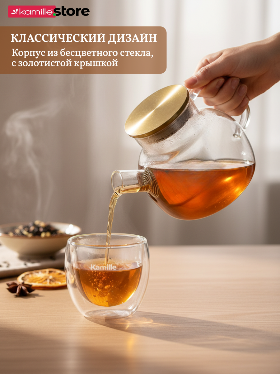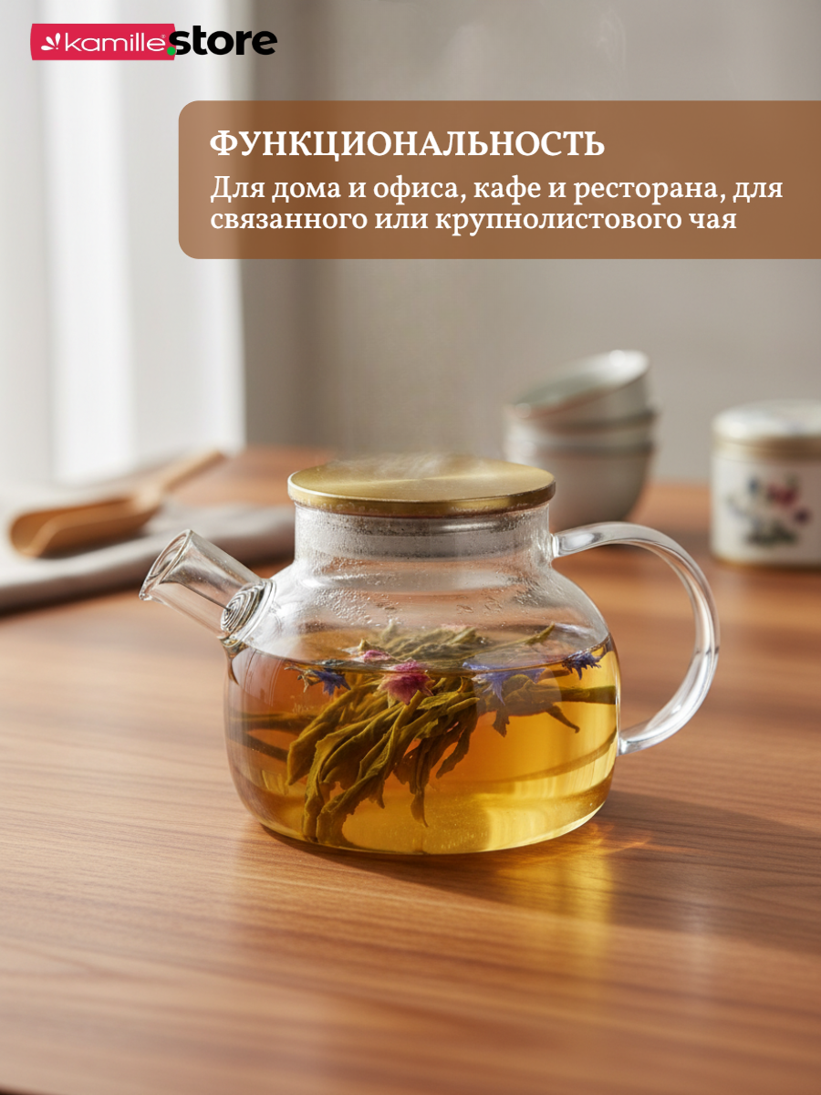 - Материал чайника: термостойкое боросиликатное стекло.