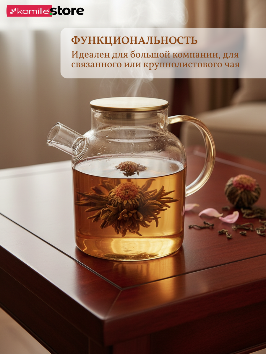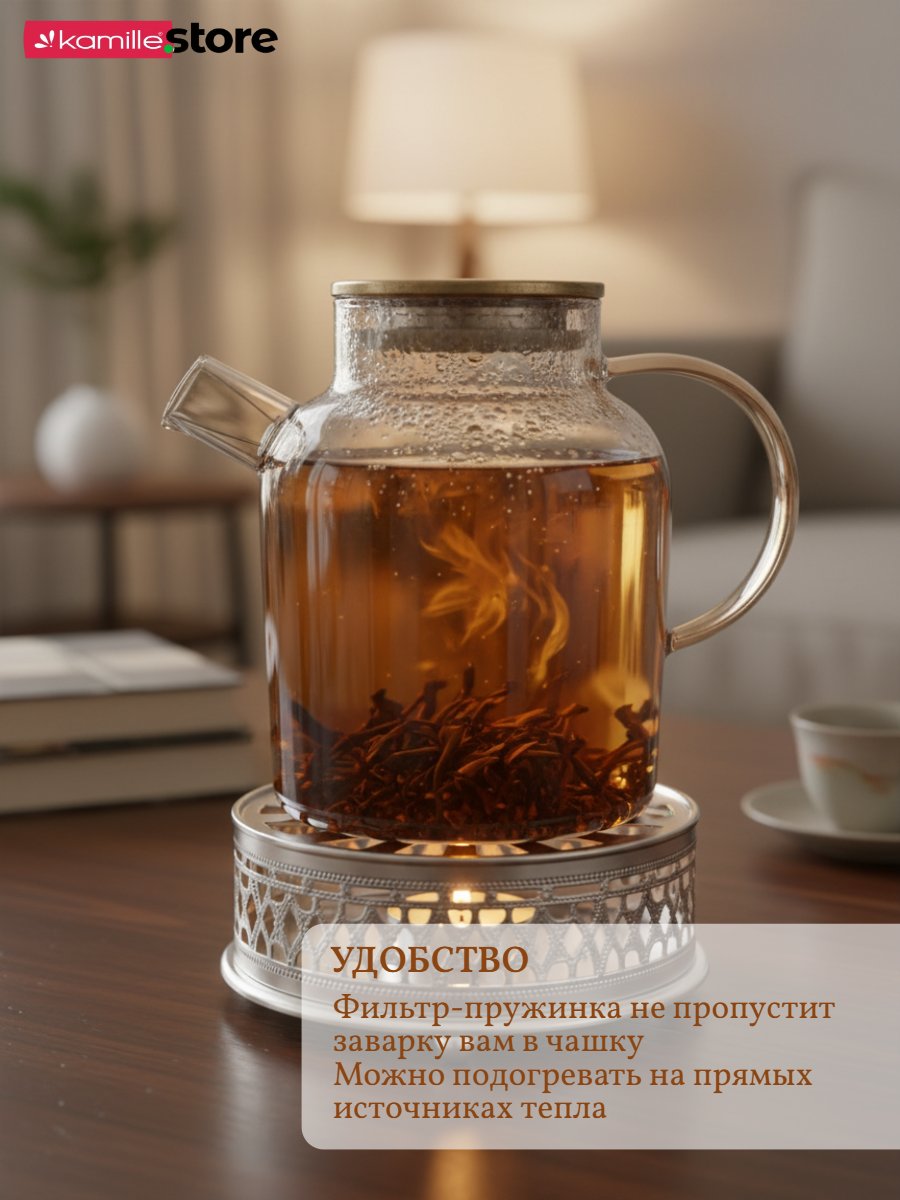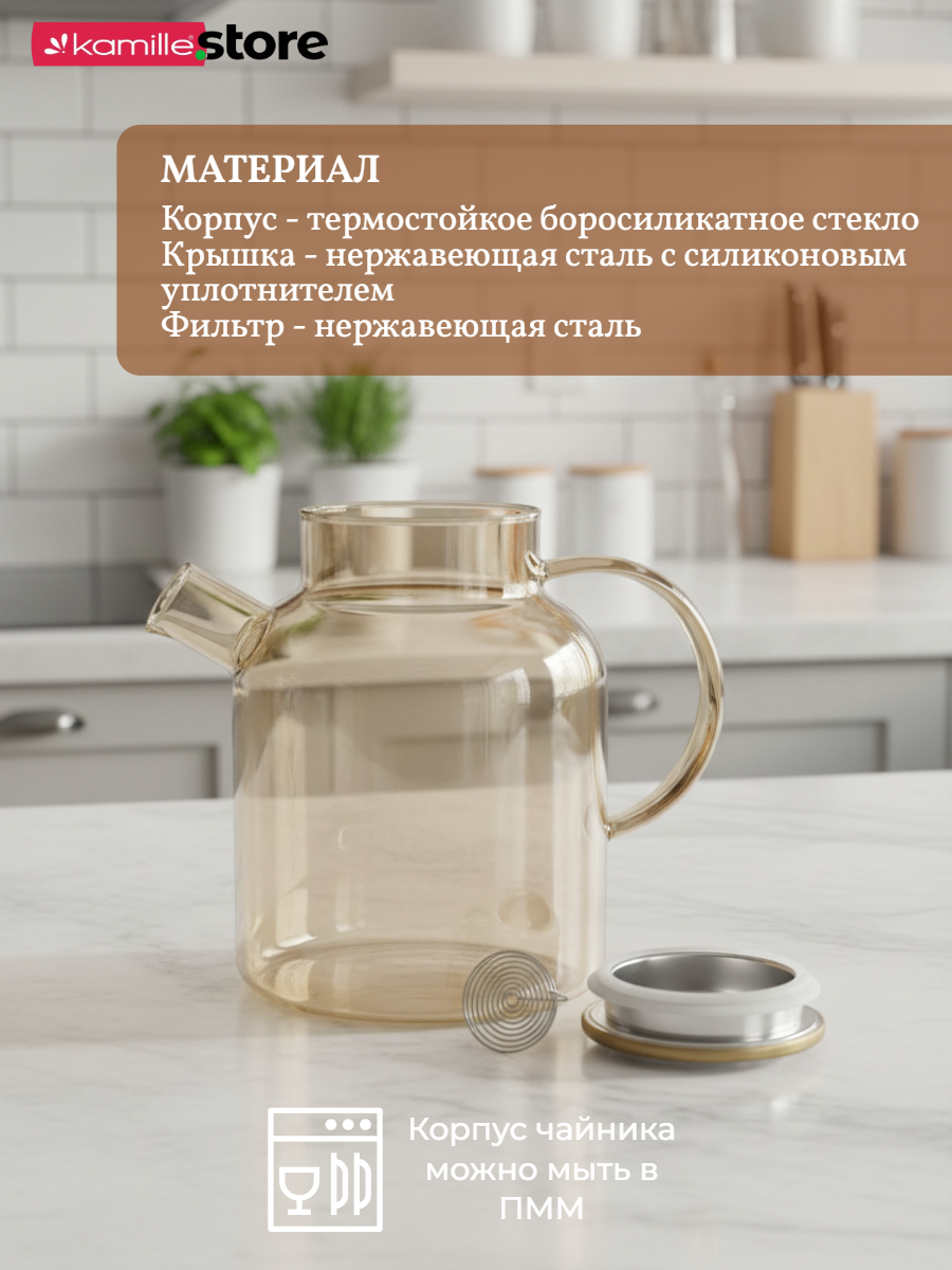 • Материал чайника: термостойкое боросиликатное стекло.