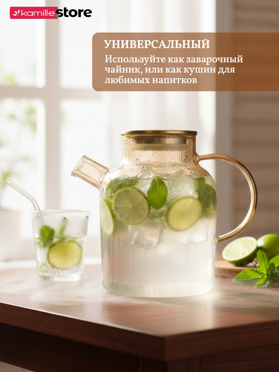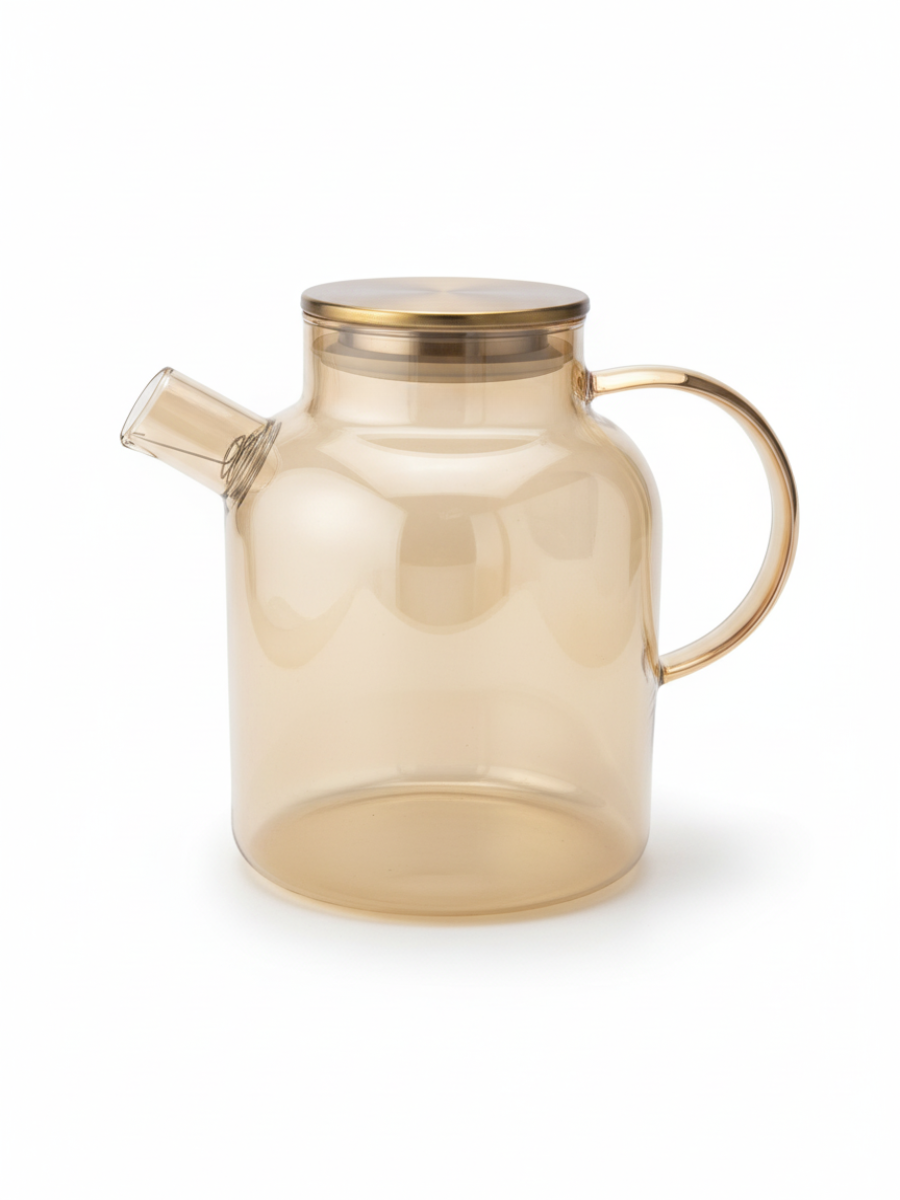 Заварочный чайник 1800 мл. гладкое медовое стекло с фильтром пружинкой в носике