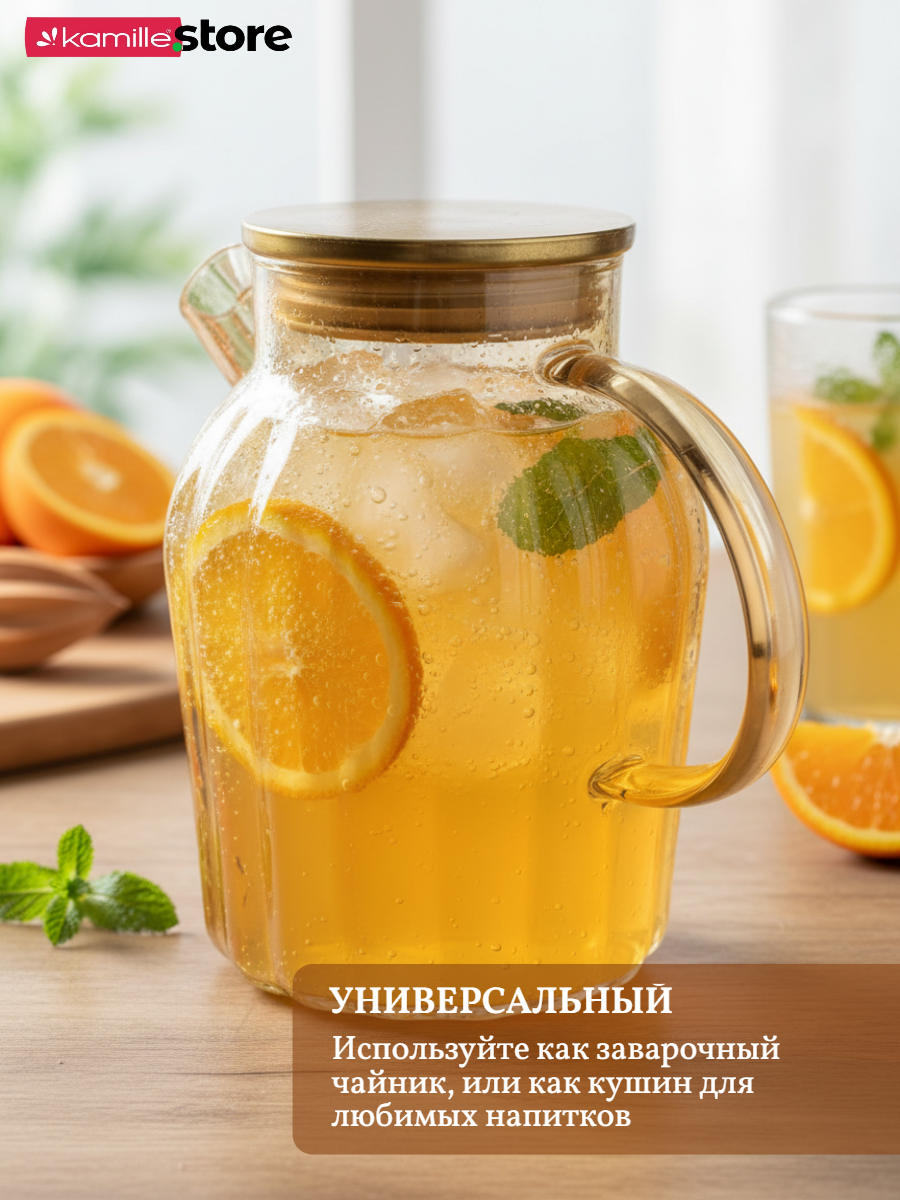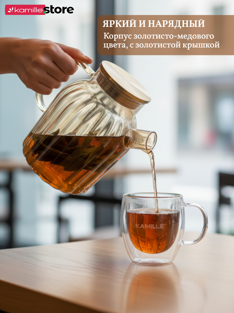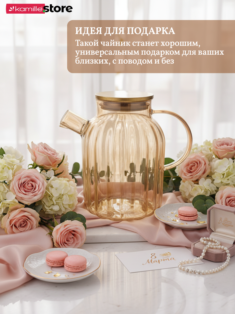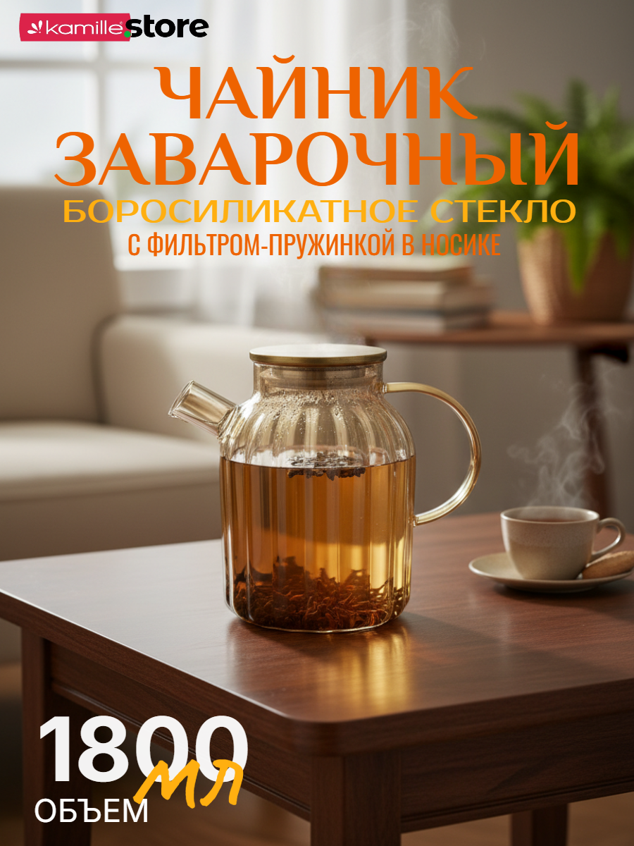Заварочный чайник 1800 мл. медовое стекло с фильтром пружинкой в носике