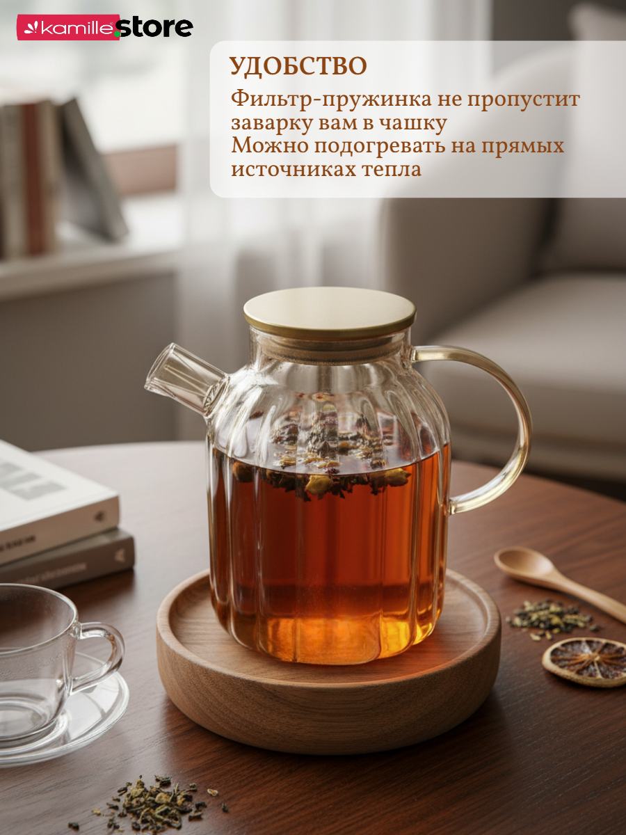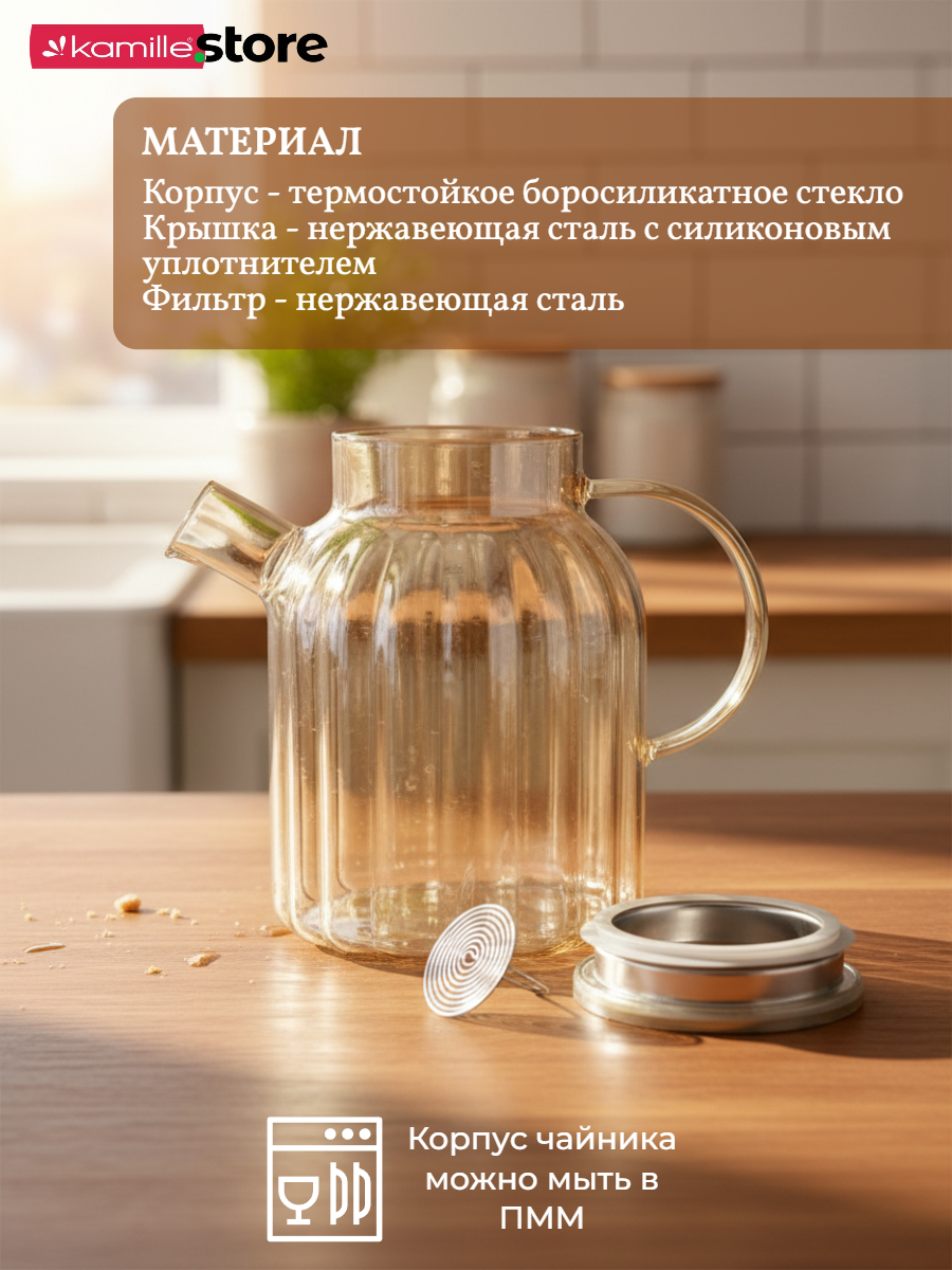 • Материал чайника: термостойкое боросиликатное стекло.