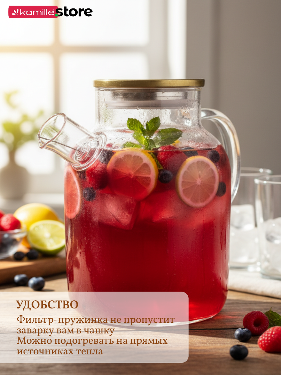 Заварочный чайник 1800 мл. стекло с фильтром пружинкой в носике